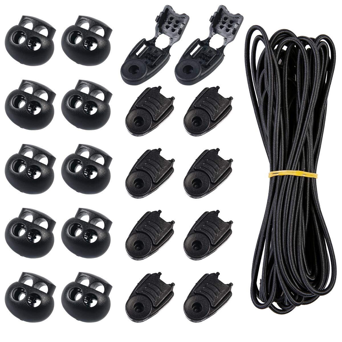 【数量限】21点セット ゴム紐 スプリングコードストッパー コードエンド コードストッパー アウトドア用ゴム 3.5mm×10m コードロック 紐止め 各 2つ穴 プラスチック パラコード 靴ひもに アウトドア用 | GIGATERA