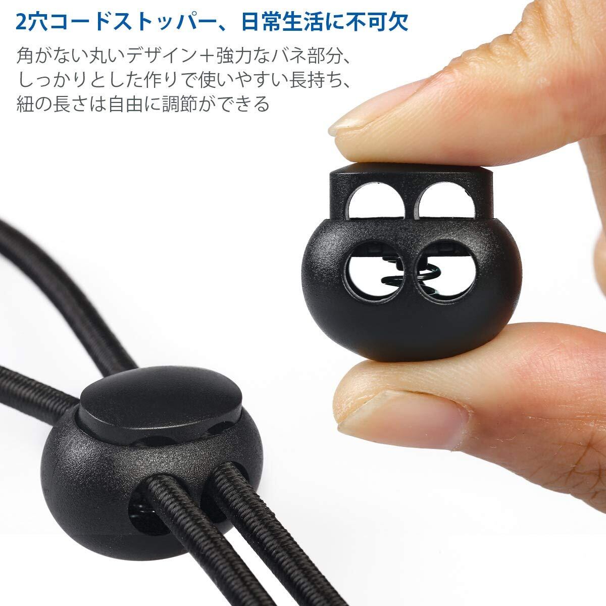 ?便利な2穴コードストッパー: 軽量で丈夫なプラスチック製で、角がない丸いデザイン+強力なバネ部分、紐の長さを自由に調整でき、しっかりとした作りで長持ちすることができます。開閉がかなり楽になって使いやすいです。