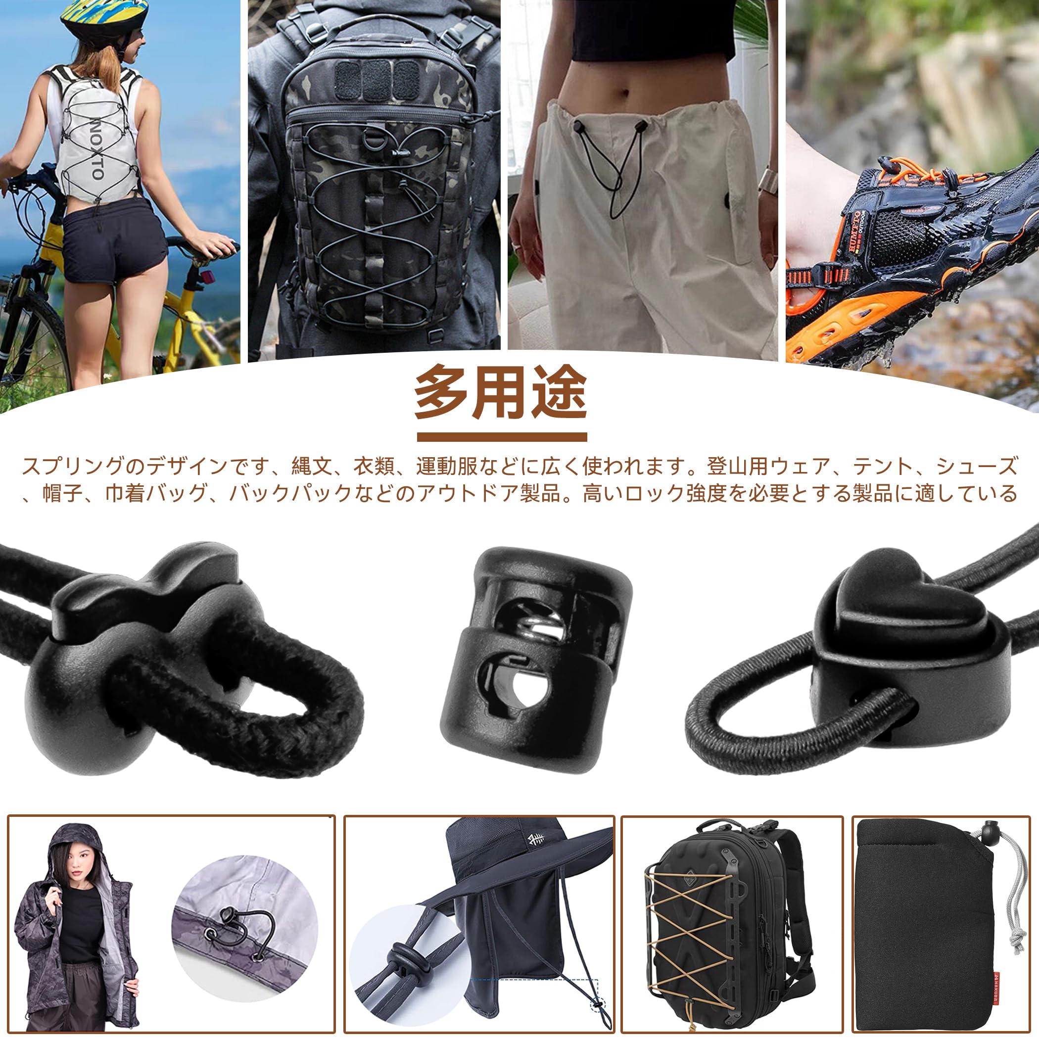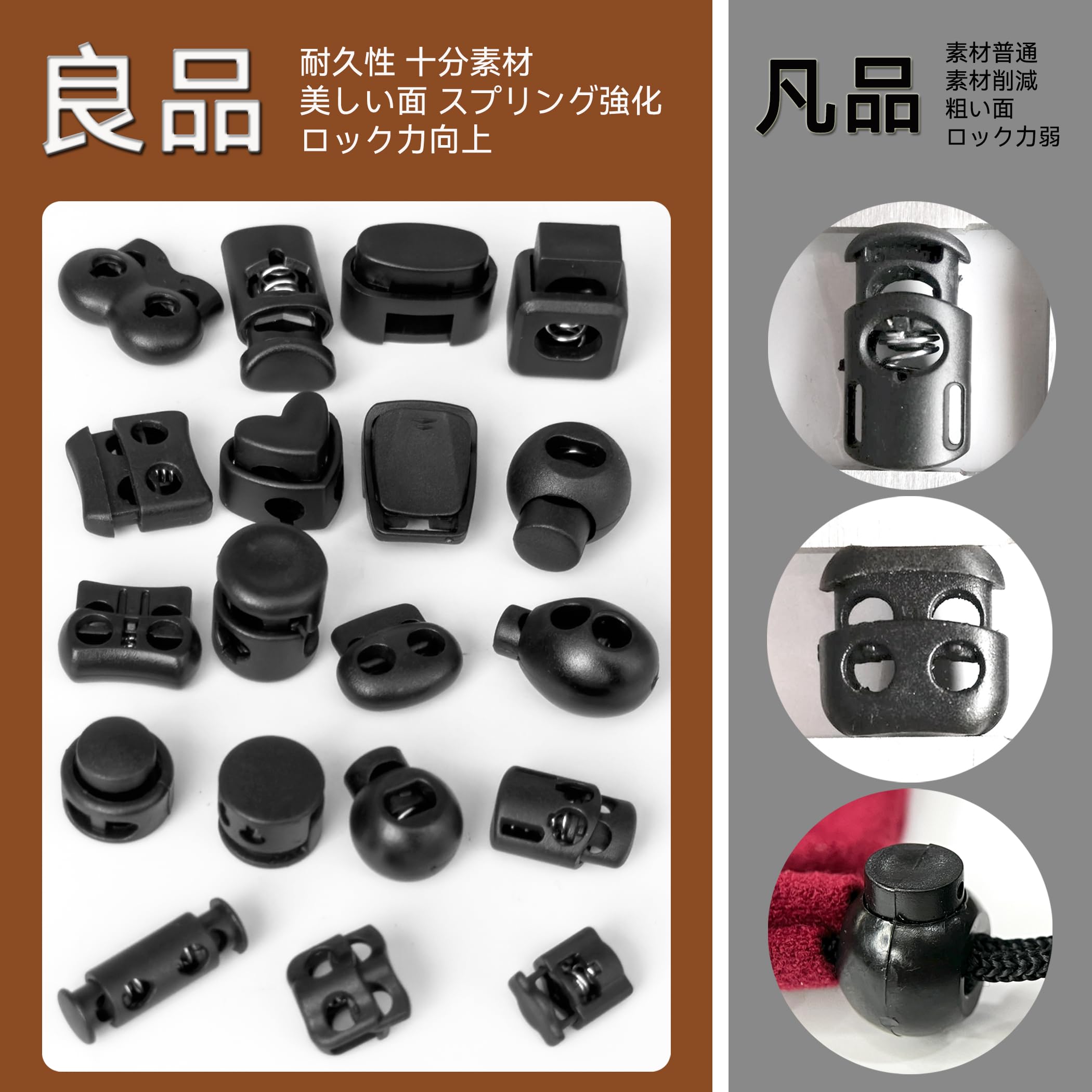 【人気】コードストッパー 軽量 小型 コードロック 2穴 3mm スプリングコードストッパー ゴムロープ パラコード 紐止め 巾着 レインジャケット 12個 短柱型 B35466 ブラック | GIGATERA