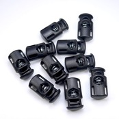 スプリングコードストッパー 1つ穴 コードロック 樽型 穴径約8mm ブラック(10個入り)