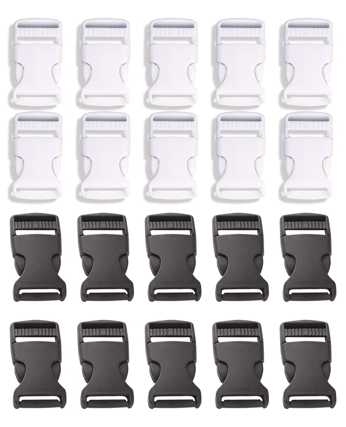[BEAUTY PLAYER] サイドリリースバックル 差し込みバックル プラスチックパーツ テープ用 戸外 山登りケーブル用 20個入り (25mm黒+白)