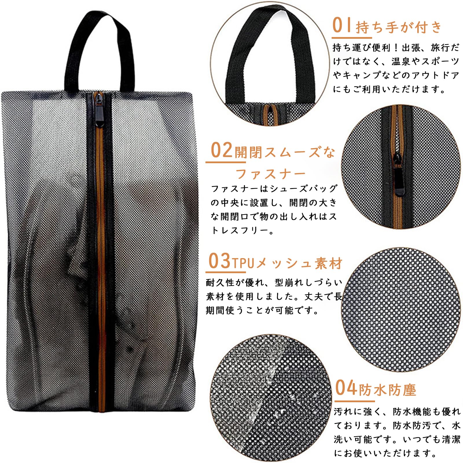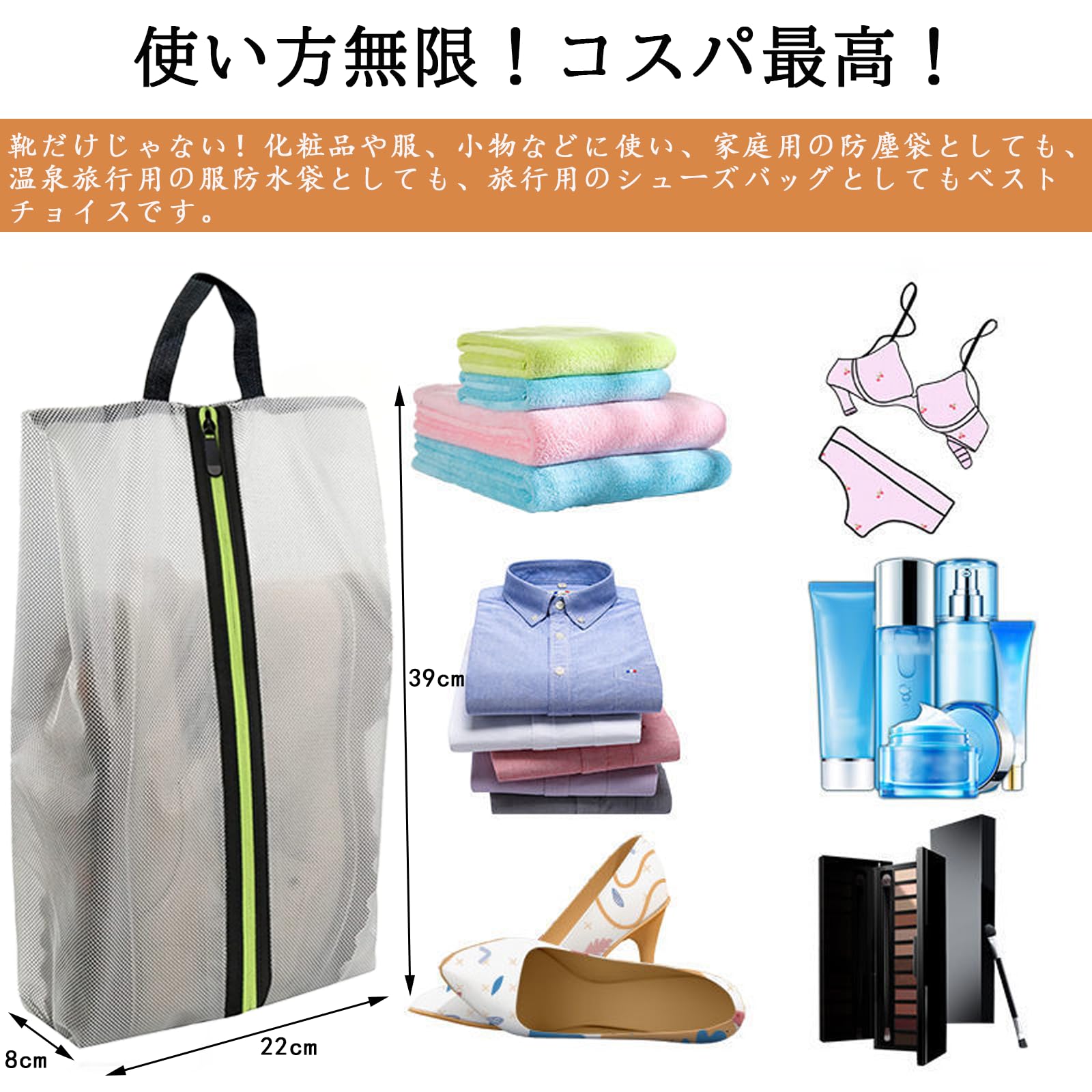 【半透明】 半透明のメッシュデザインなので袋を開けることなく靴を素早く認識できます靴だけでなく、化粧品や衣類、小物などを入れることができるので、家庭用のホコリ対策バッグや旅行靴のバッグにも最適です。