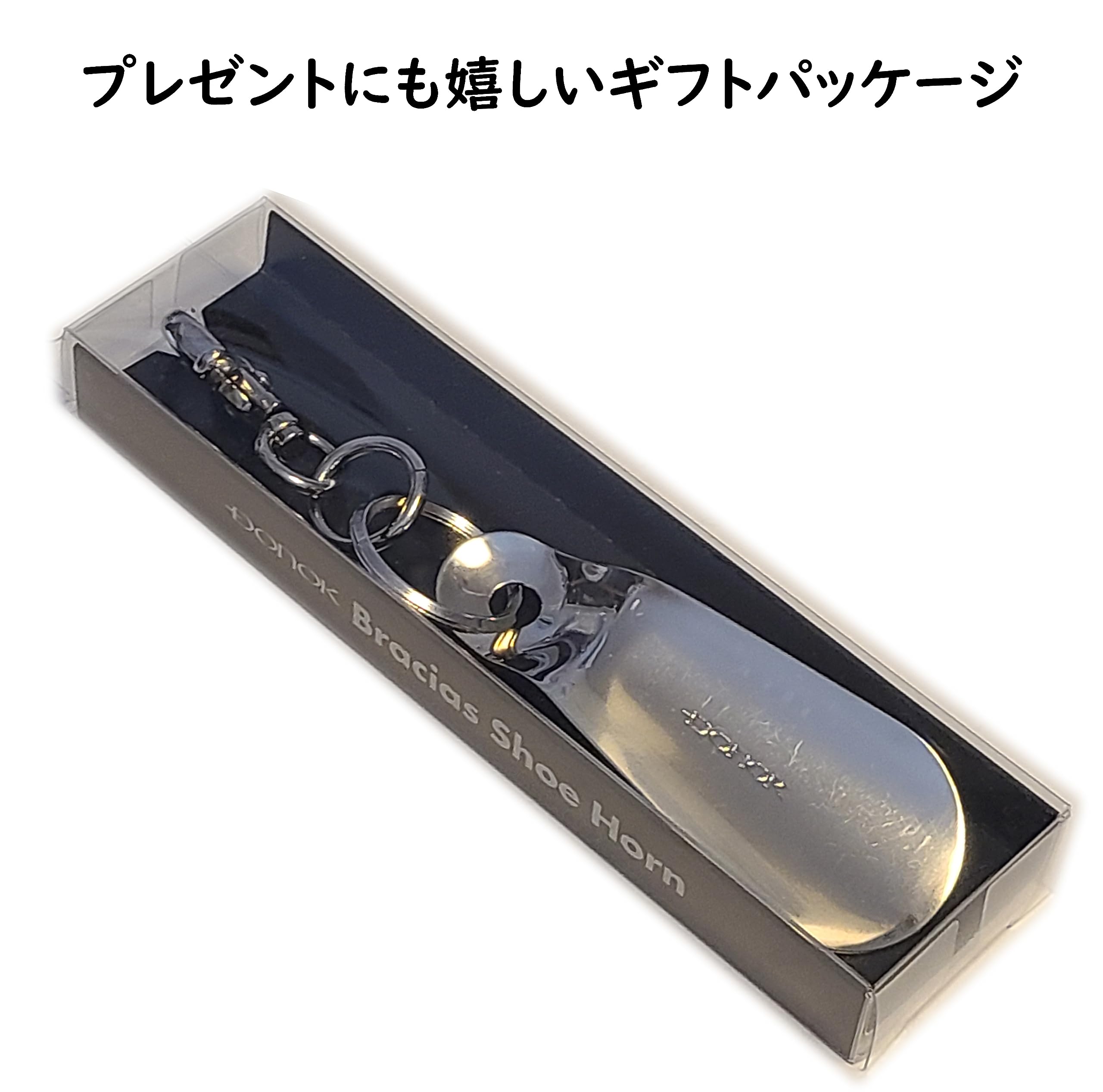 携帯 靴べら 真鍮 おしゃれ ハンド シューホーン 日本製 キーホルダー カラビナ フック付き ニッケル シルバー Bracias Shoe Horn
