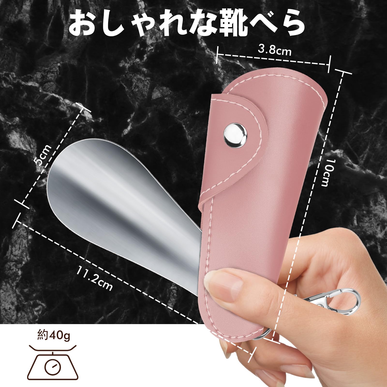 [ZOMAKE] 靴べら シューホーン ミニ PUカバー キーホルダー付き ステンレス製 おしゃれ 短い 耐用 携帯用 男性、女性、子供、高齢者用