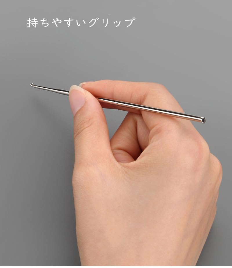編みやすい針先で、糸が外れにくく、目を拾ったり糸を引き抜きやすいです。