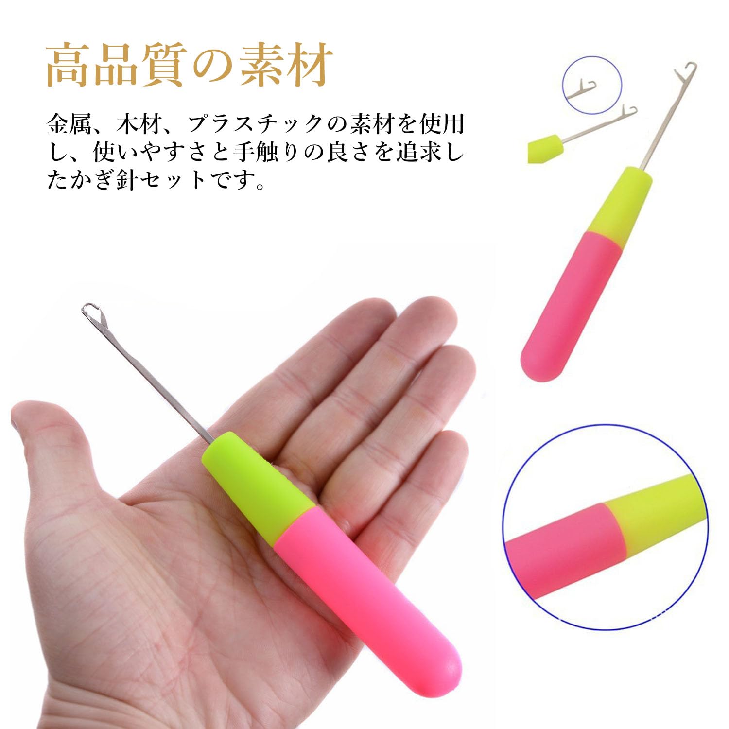 【セット内容】5本のかぎ針が含まれており、5種類のサイズで様々なニーズに対応します。(ご注意:かぎ針の先端は鋭い部分があるため、お子様や赤ちゃんの手の届かない場所に保管してください。)