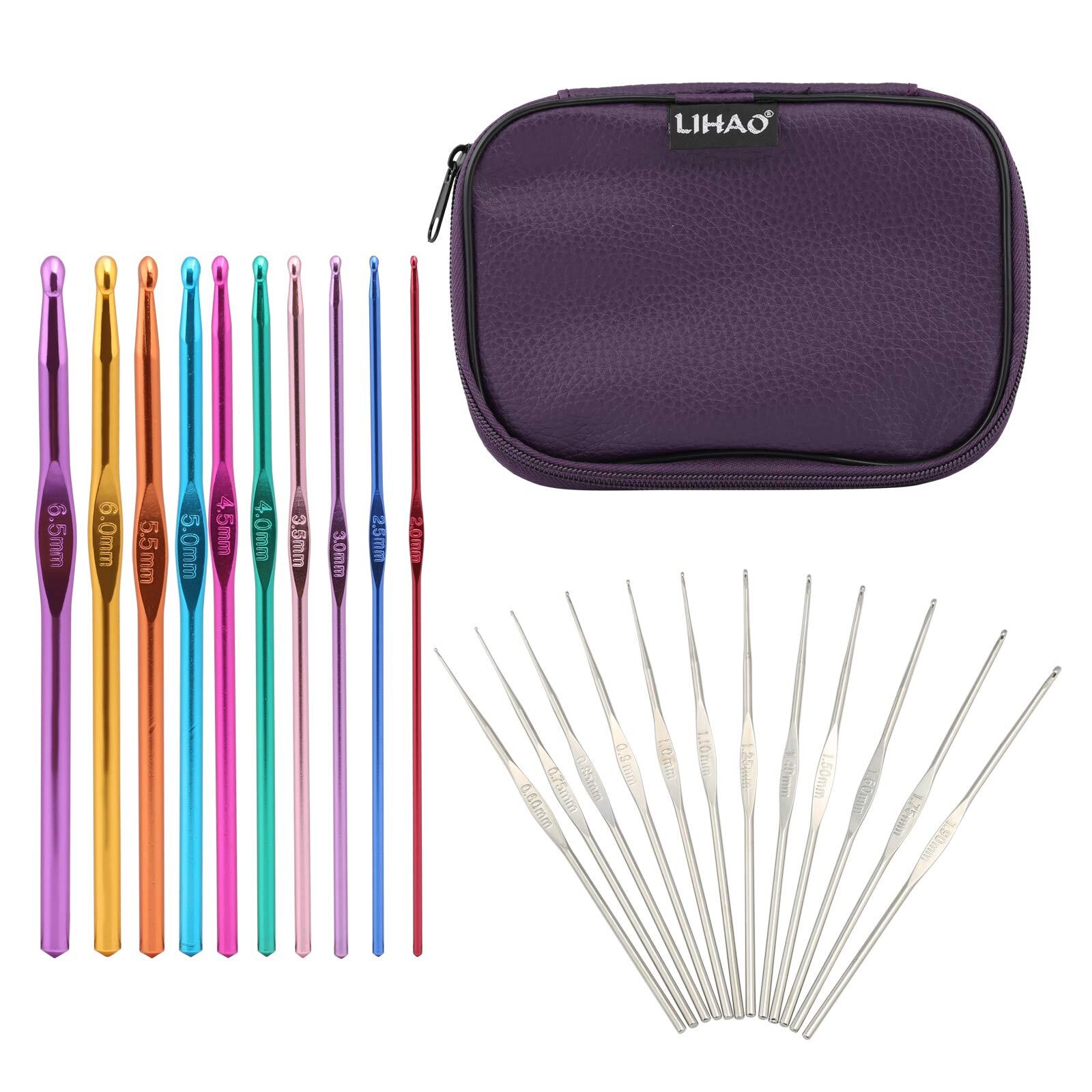 LIHAO かぎ針 編み針 22本 セット 毛糸 かぎ針10本とレースあみ針12本 ケース付き 編み物 セーター マフラー ニット 帽子 編物 母の日プレゼント ギフト
