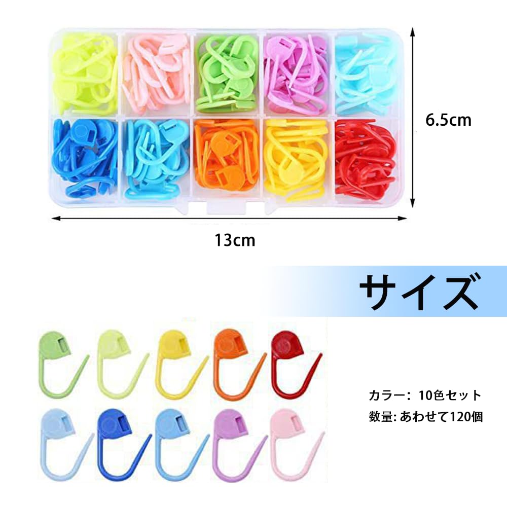段数マーカー 段数リング ステッチマーカー 編み物 編み物ツール 編み物用品 段数リング カラフル かぎ針編み おしゃれピン DIY 手芸 携帯に便利 収納ケース付き 10色 120枚セット (B)