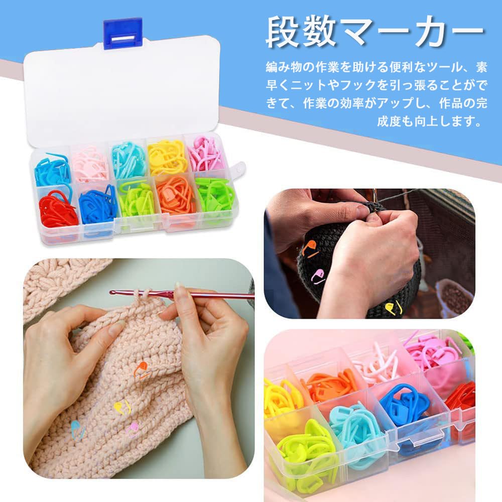 【人気】 段数マーカー 段数リング ステッチマーカー 編み物 編み物ツール 編み物用品 段数リング カラフル かぎ針編み おしゃれピン DIY 手芸 携帯に便利 収納ケース付き 10色 120枚セット (B) | GIGATERA