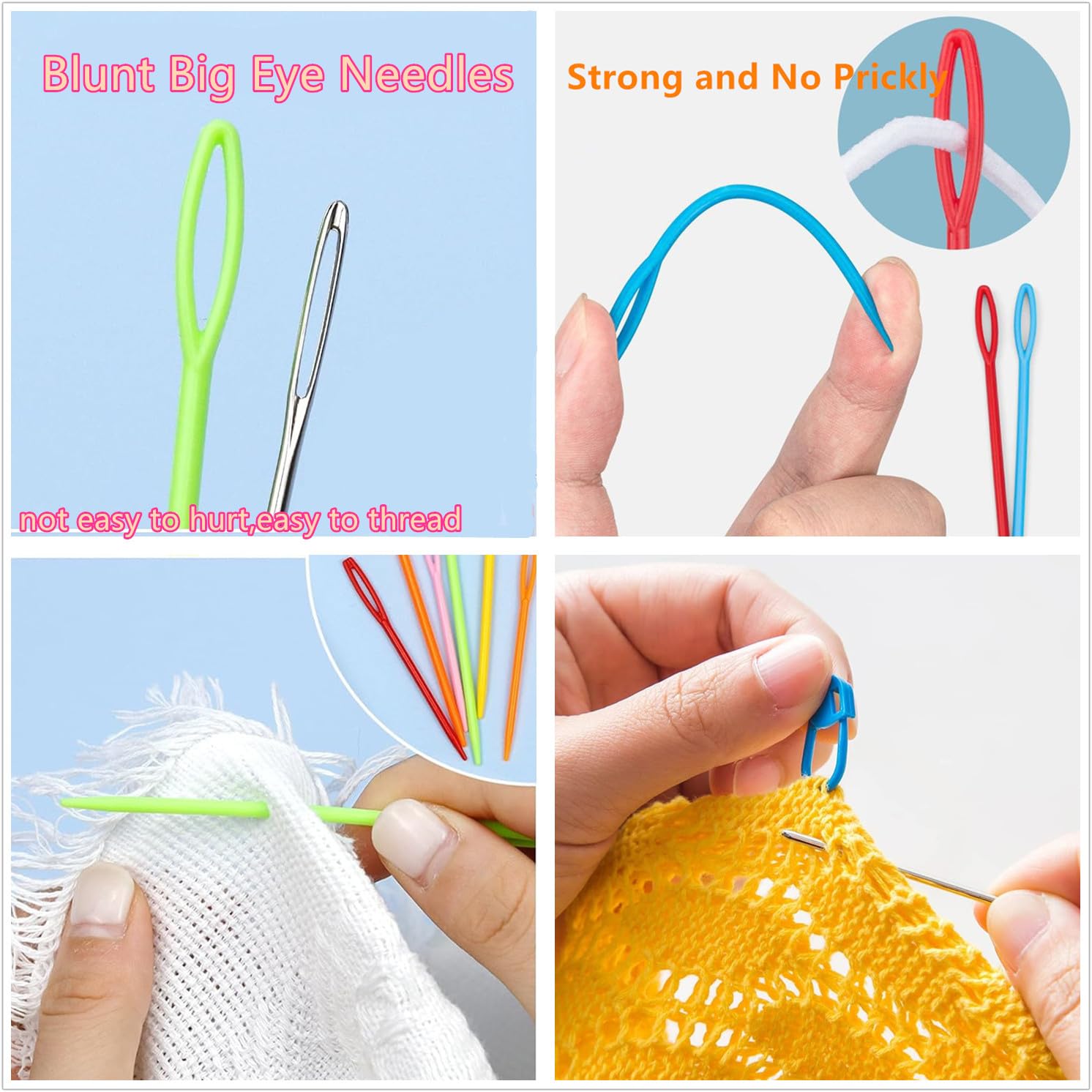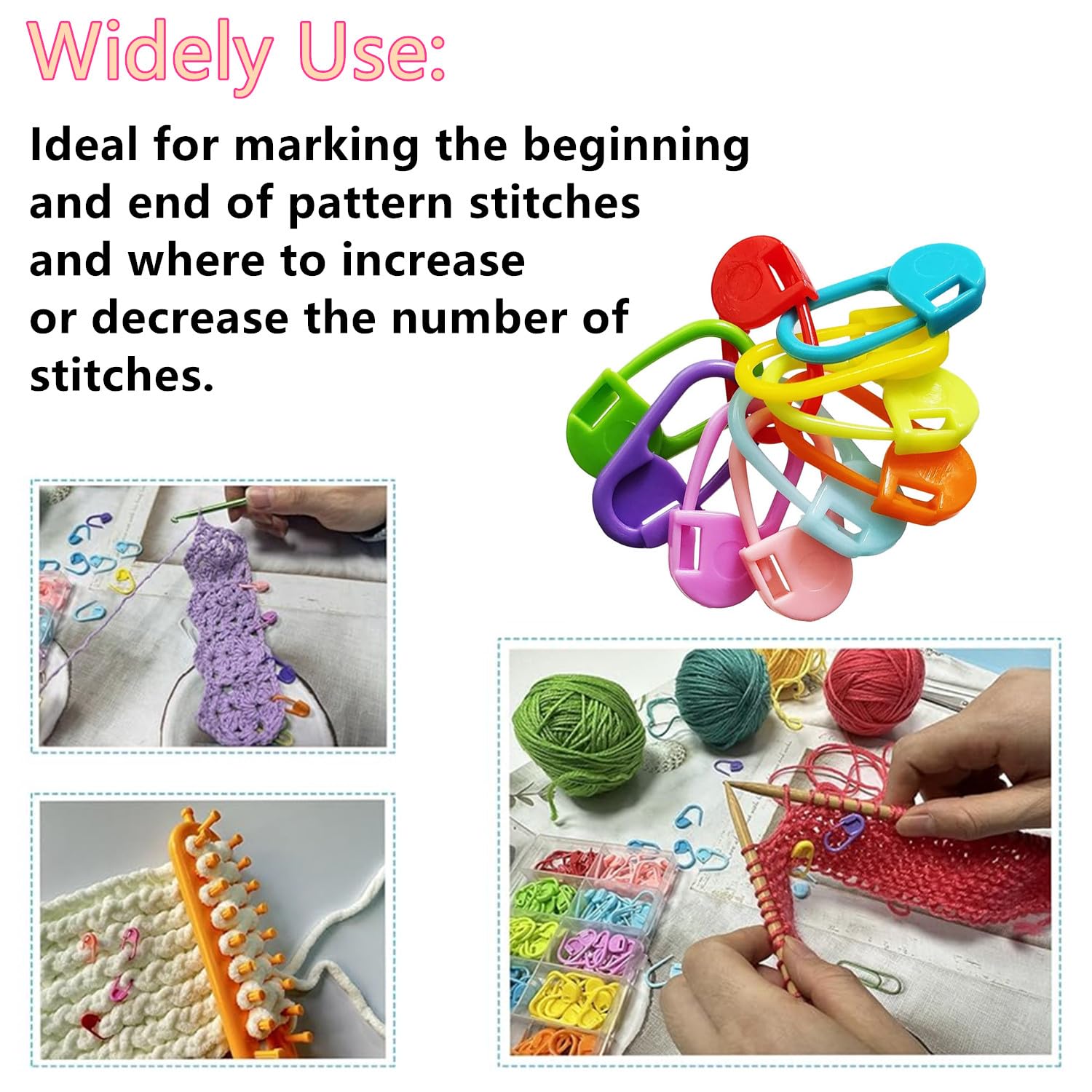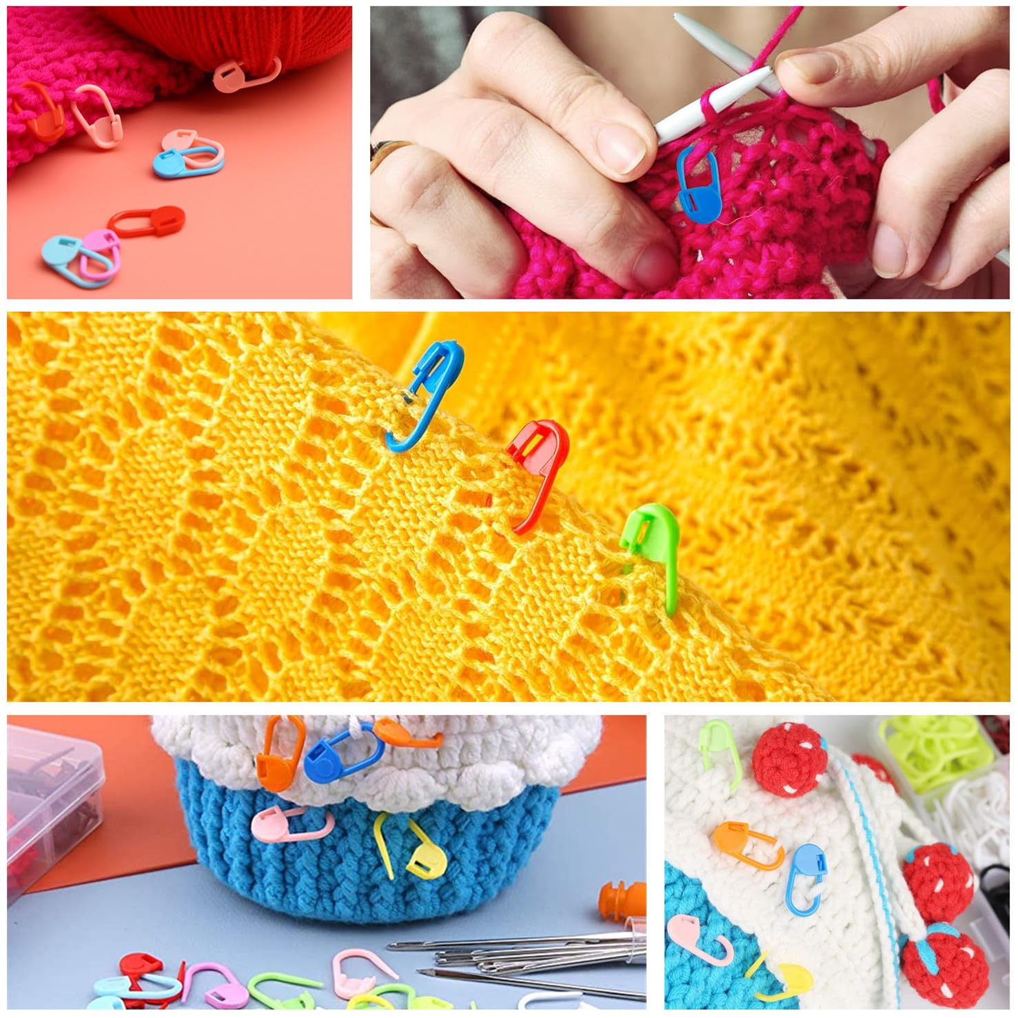 編み物 マーカー ステッチマーカー 120個 10色、10個 大きな目の鈍い縫い針 かぎ針ケース マーカー 編み物 収納ケース付き