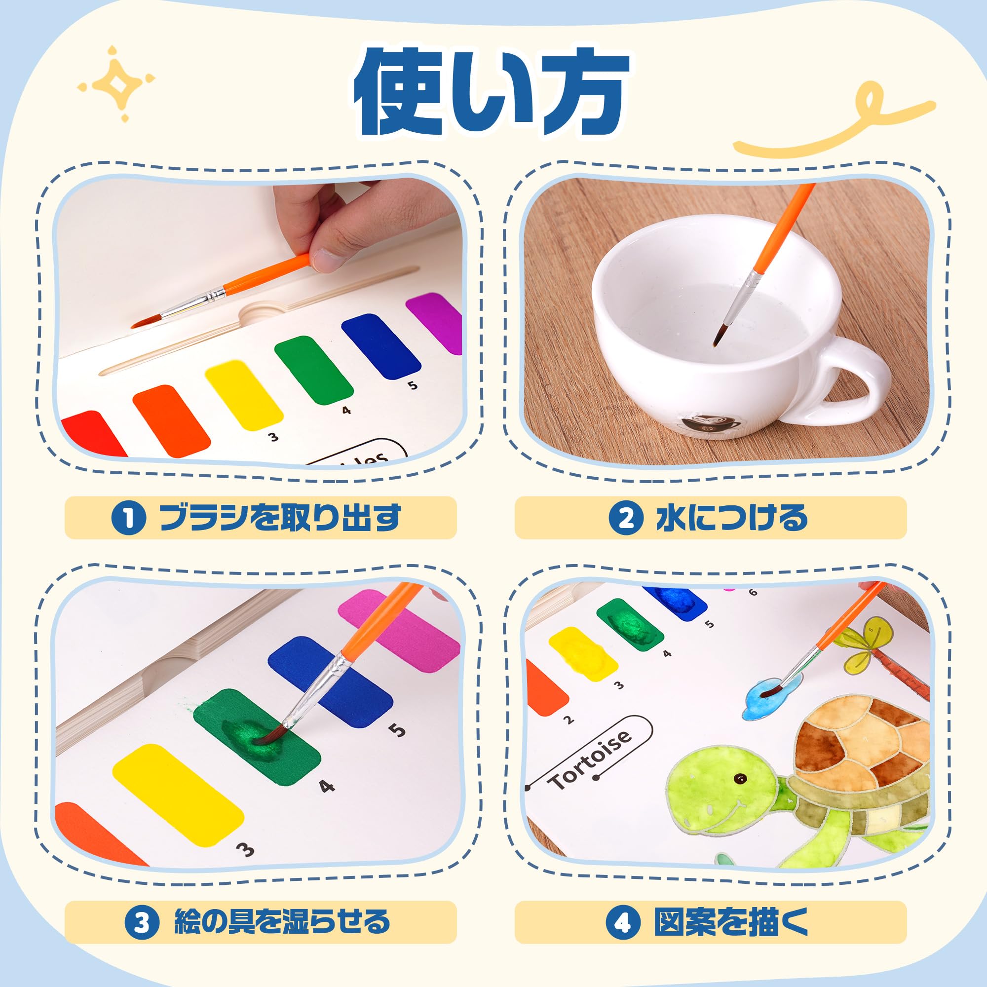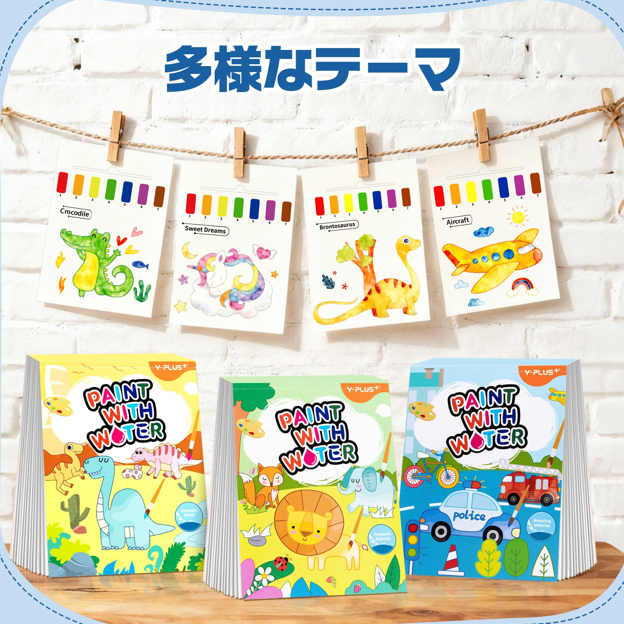 YPLUS 幼児向け水塗り絵 1-3歳 2-4歳の子供用水彩画用紙 何回でもぬれる塗り絵 筆付きの絵画手工芸ギフト 動物柄