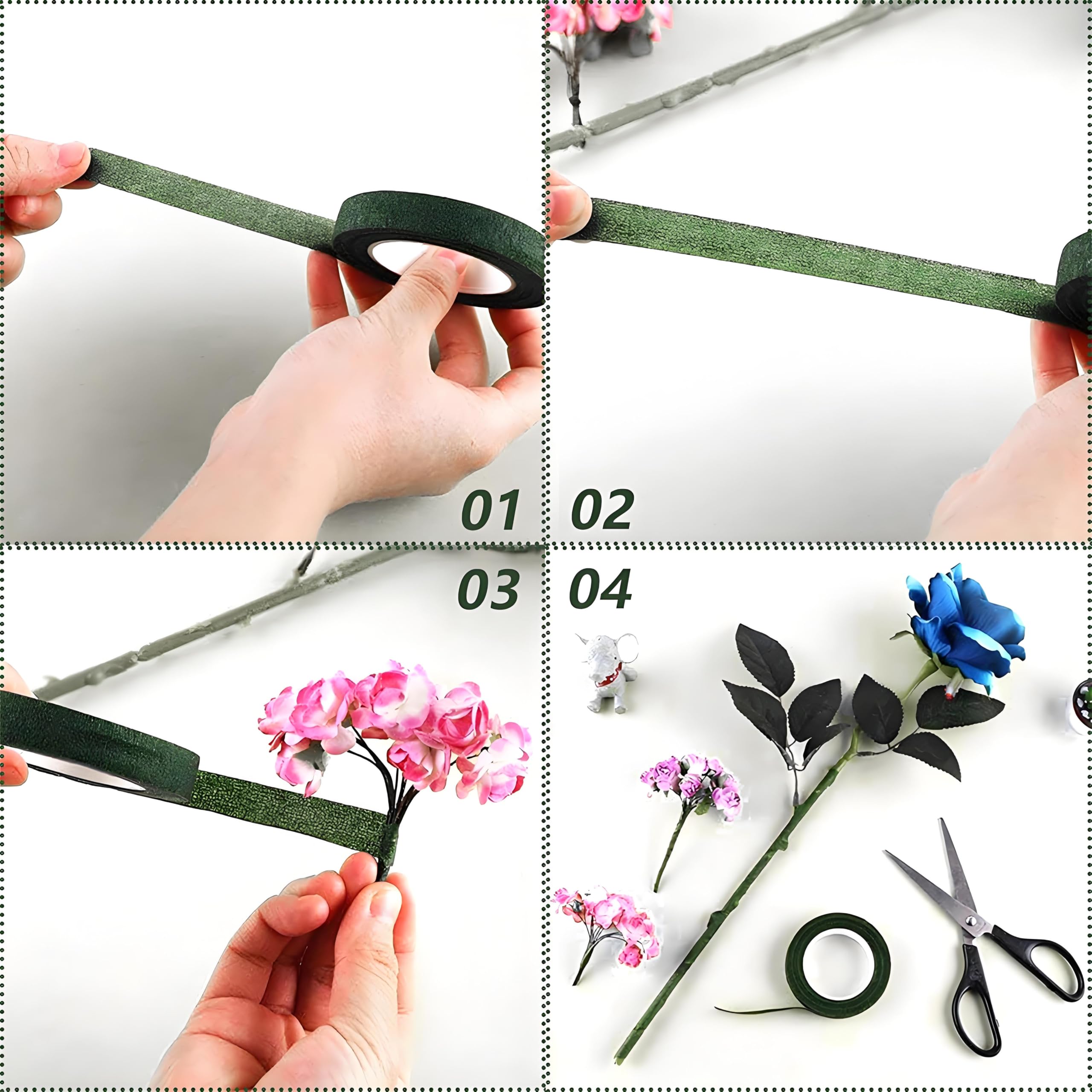 2.【高品質素材】フラワーポールはプラスチックとワイヤーでできており、丈夫で耐久性があり、折りたたみ可能です。ラップがリアルさを引き立てる。 フローラルテープは伸縮性と粘着性に優れています。