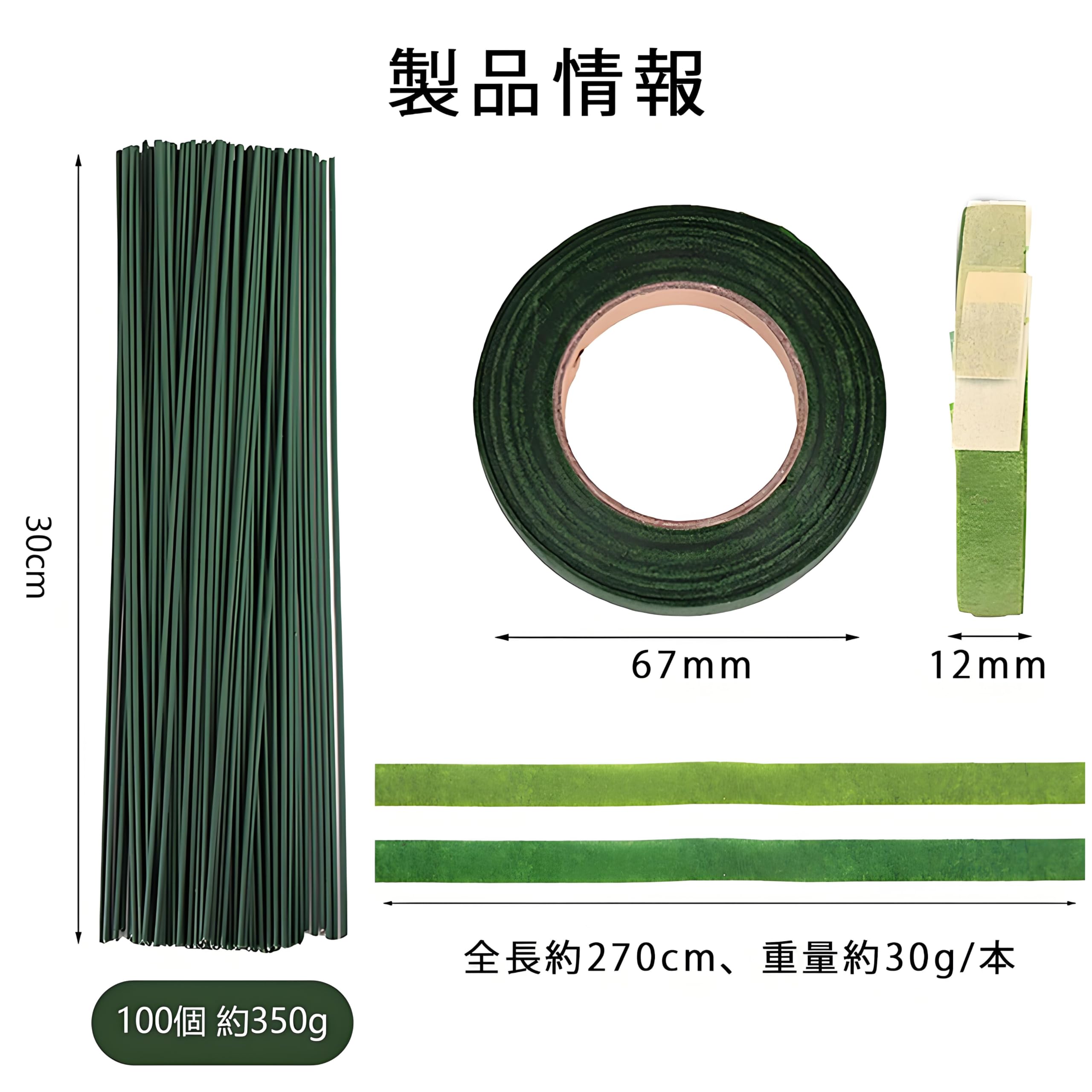 【数量限】フローラルテープ フラワーワイヤー 造花セット 緑 リース ワイヤー フローラテープ 100本入り ?度?30cm 2巻入 フローラテープ ワイヤーアート 花 フラワーアレンジメントキット DIY 手芸材料 | GIGATERA