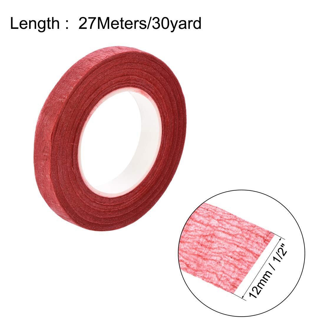 uxcell フローラルテープ 2ロール 12mm幅 30ヤード 花の接着剤 フラワーアレンジメントキット レッド