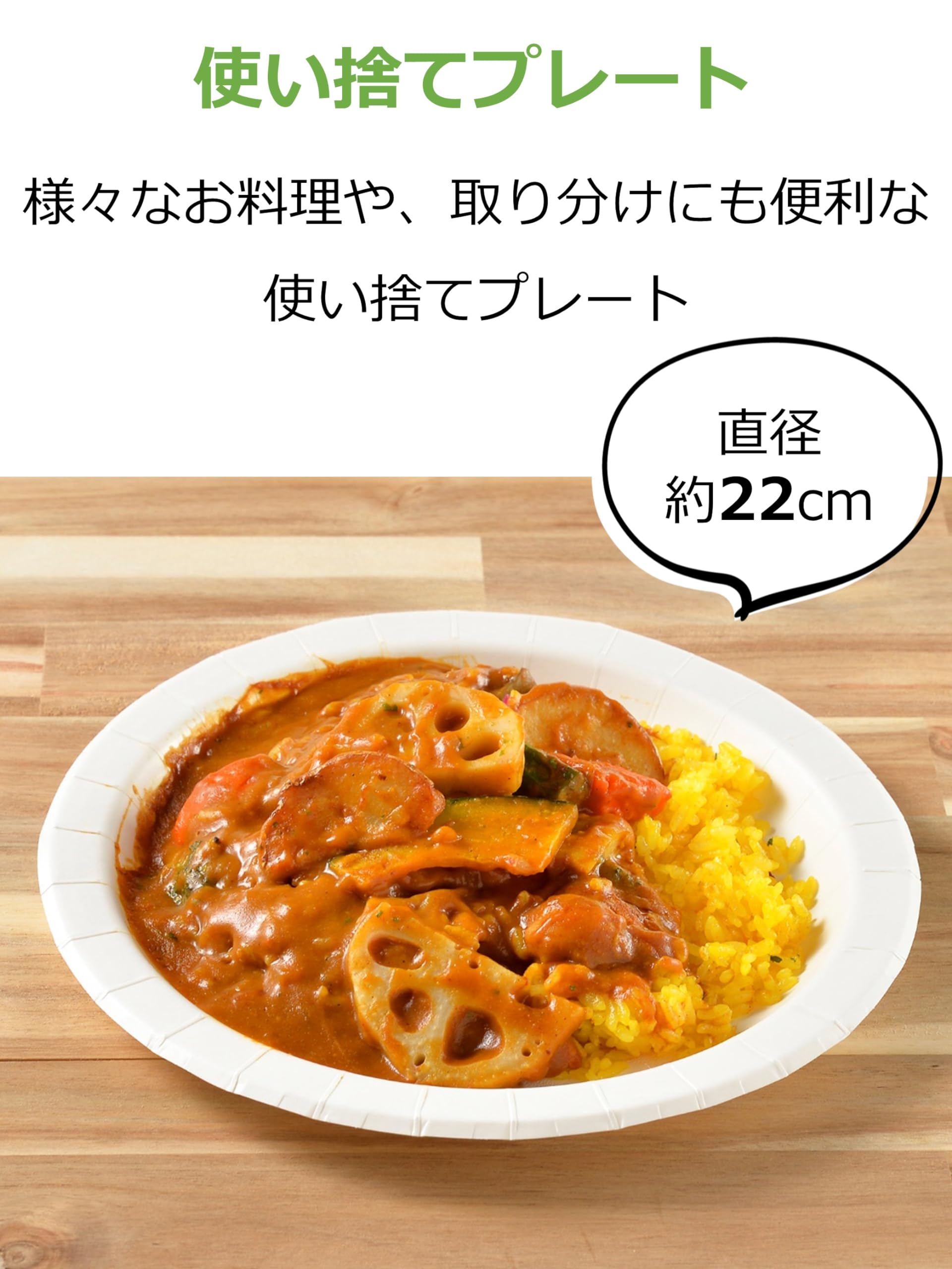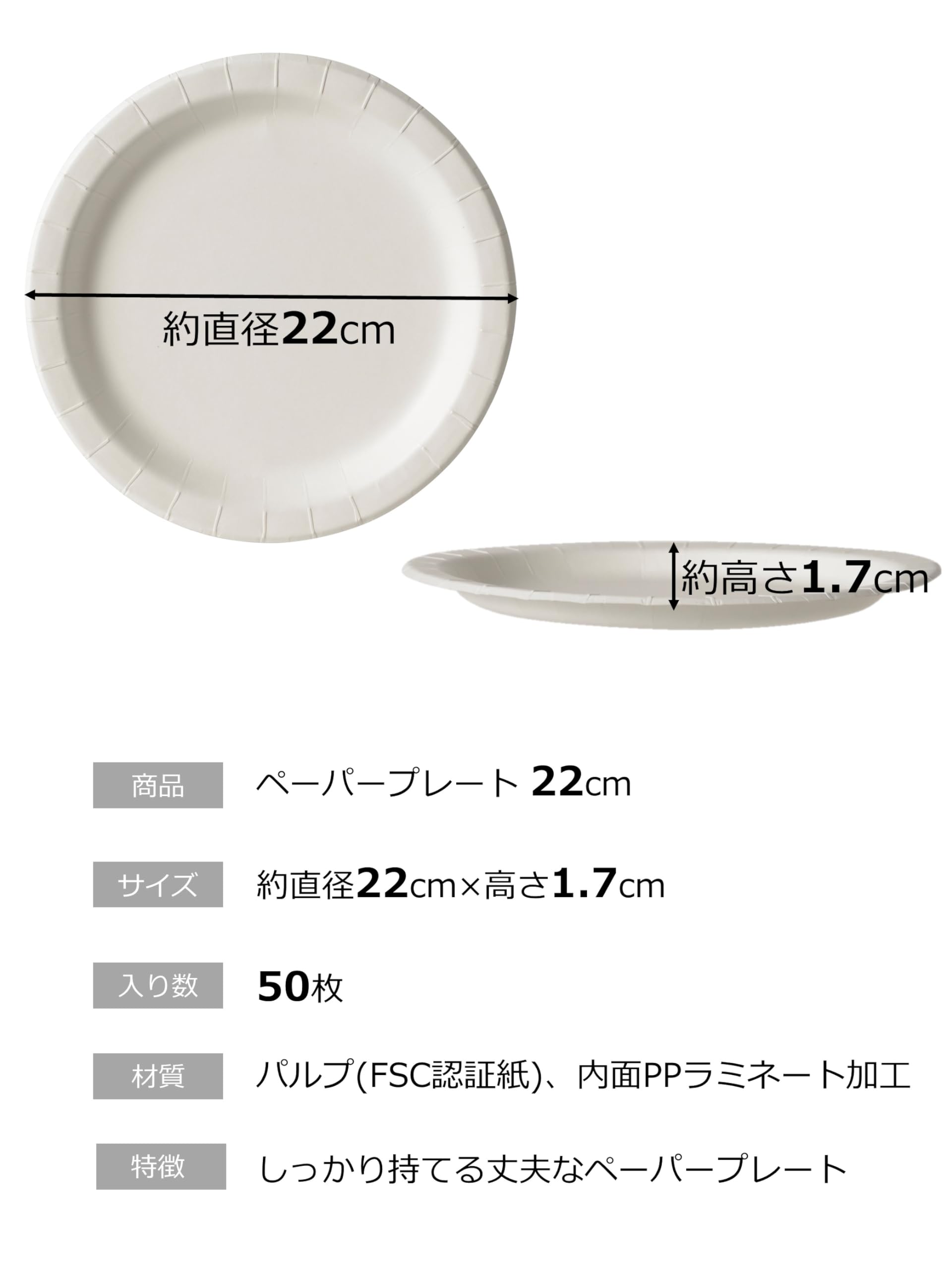 特徴:しっかり持てる丈夫なペーパープレートです。