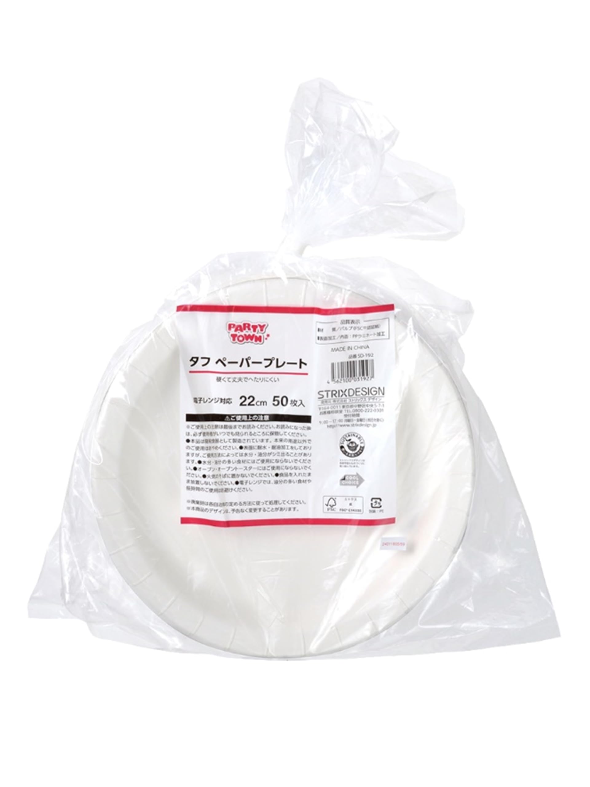 ストリックスデザイン 使い捨て 紙皿 パーティタウン タフペーパープレート 22cm 50枚入 SD-192
