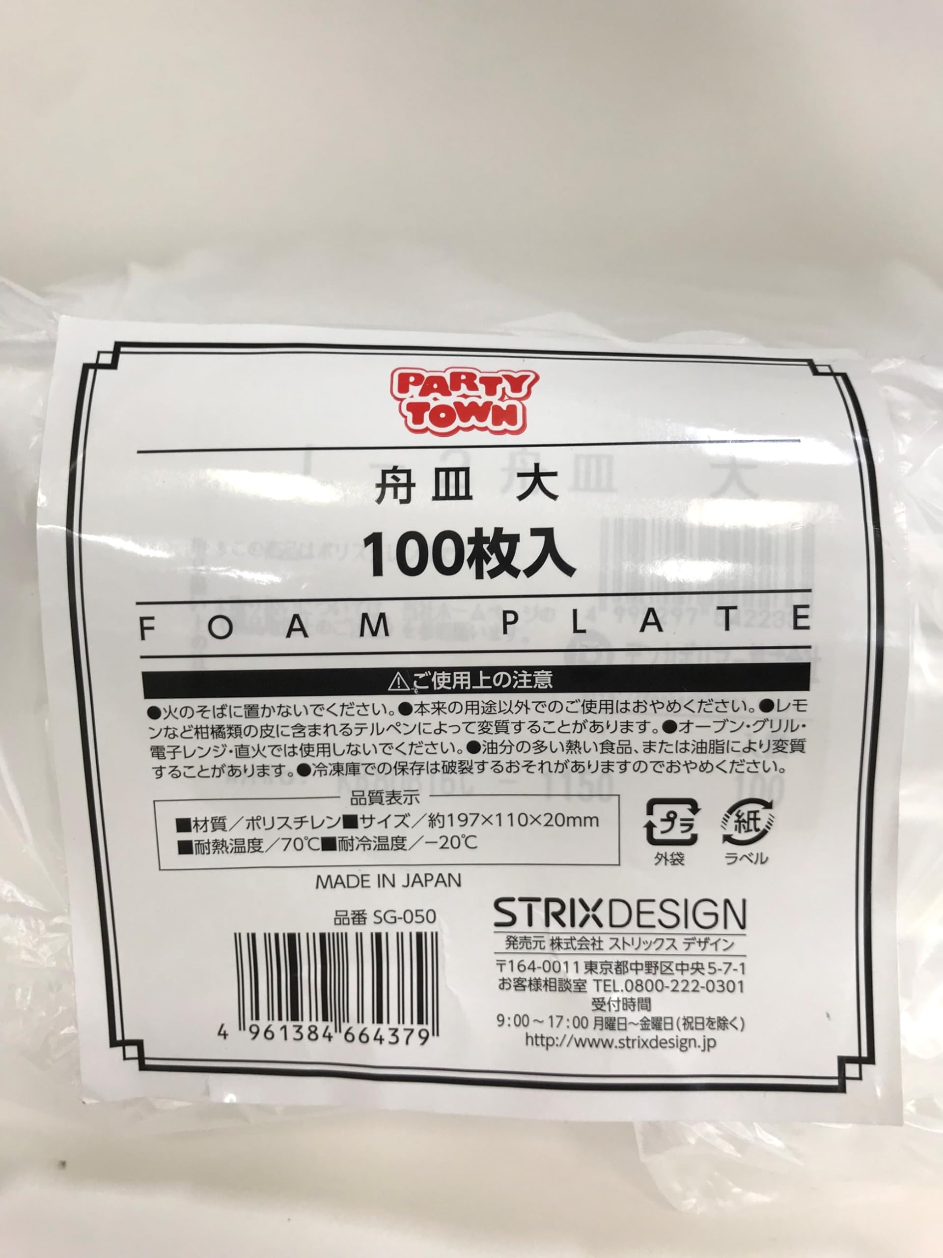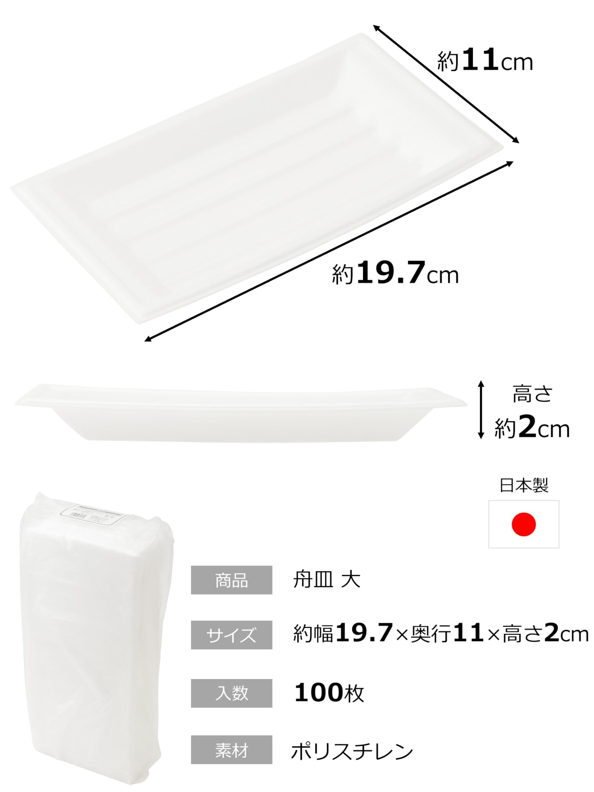 ストリックスデザイン 舟皿 使い捨て食器 日本製 100枚 大 白 テイクアウト容器 イベント 屋台 業務用 軽い 軽量 SG-050