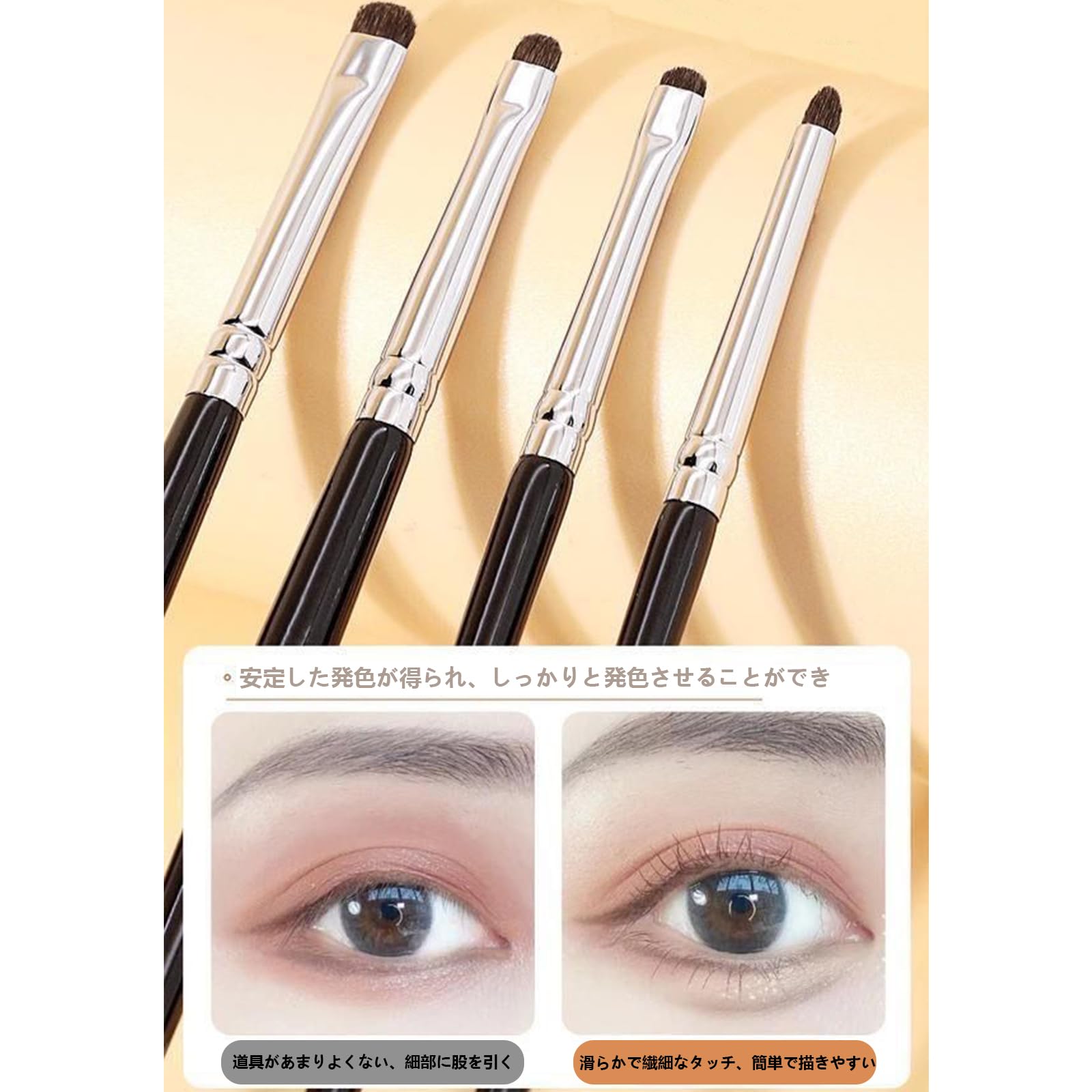 【アイシャドウブラシ】アイシャドウブラシは4本の極細アイブラシがあり、アイライナーブラシ、ディテールブラシ、アイシャドウぼかしブラシ、目元のハイライト、豊富な機能で毎日のアイメイクに対応し、立体的な3Dアイメイクを作ることができます。
