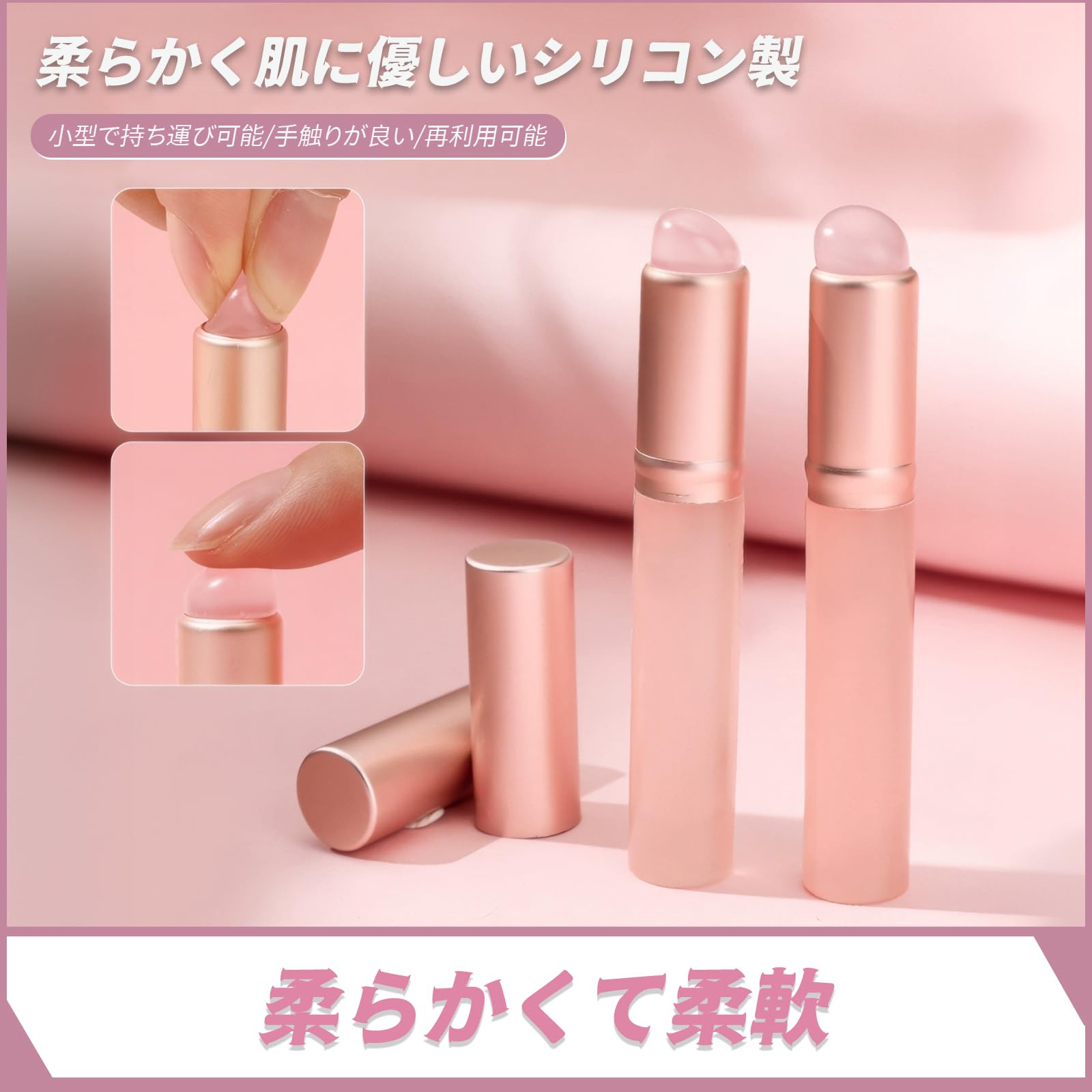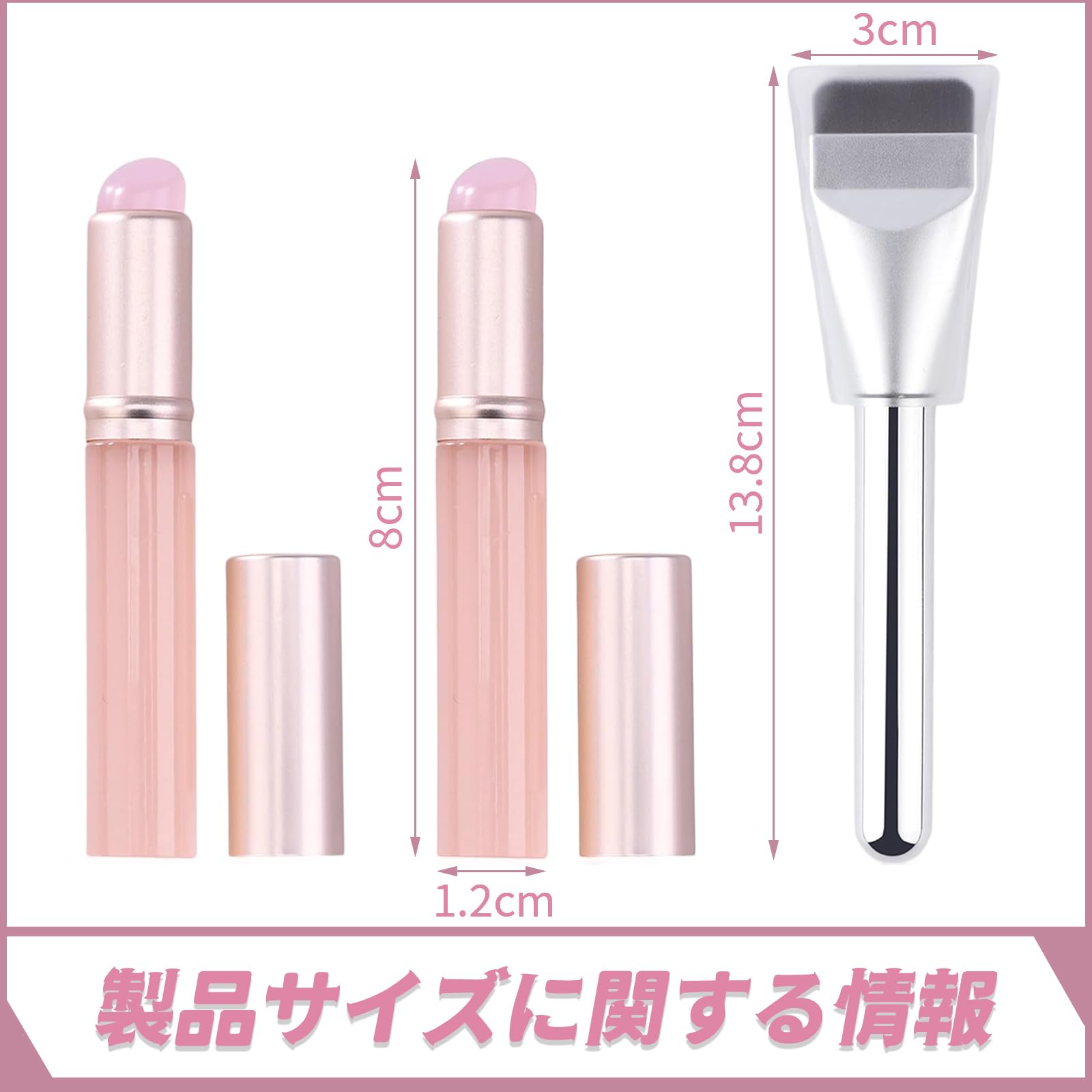 【パッケージ内容】: セットにはシリコンリップブラシ2本とファンデーションブラシ1本が含まれます。リップブラシサイズ:8*1.2cm(カバー付き)、材質:シリコンブラシヘッド、重量:約9g/1本。