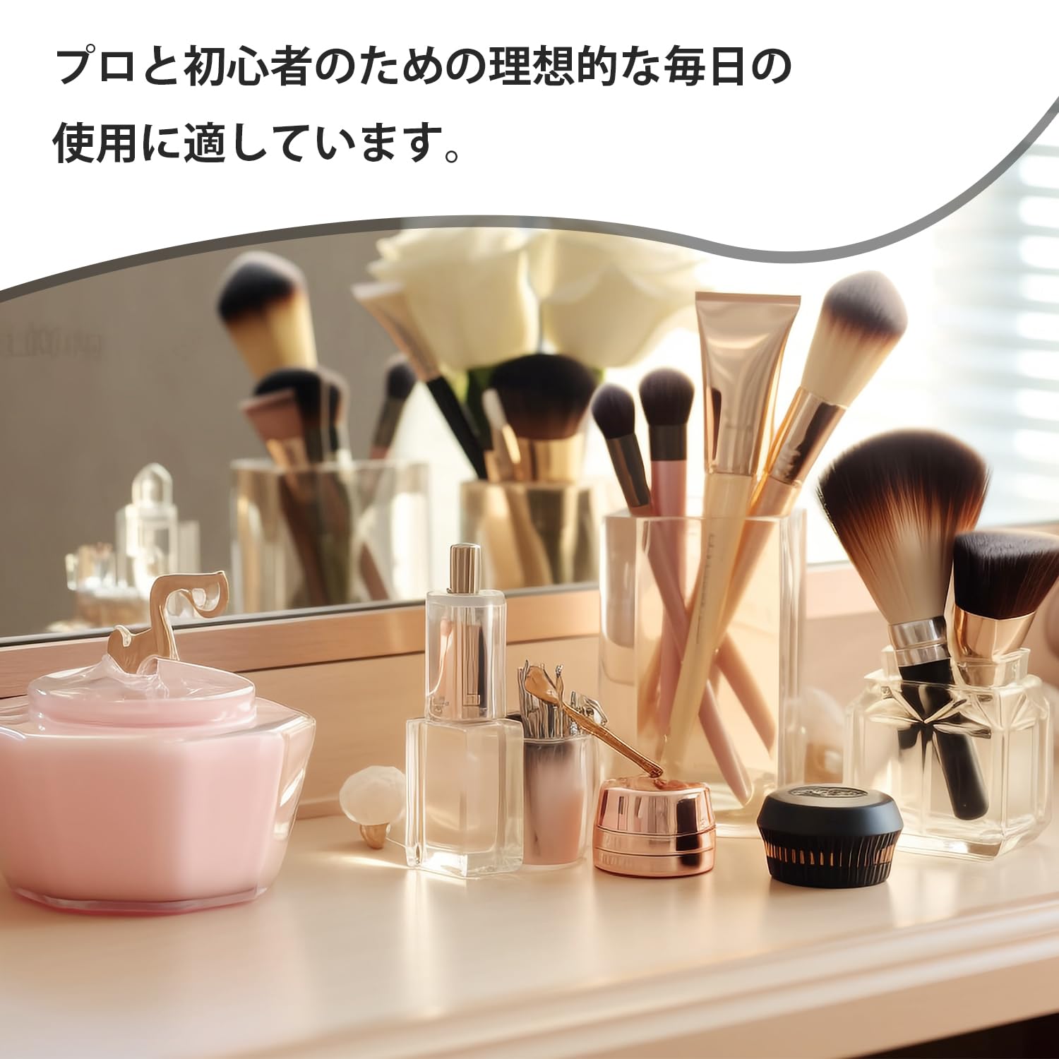 【ユニークなデザイン】ルースパウダーブラシ、アイシャドウブラシ、スマッジブラシ、リップブラシの4in1トラベルメイクブラシのセットです。これらのブラシはすべてオーガナイザーに収納されており、化粧ブラシセットの清潔さと衛生面を守るだけでなく、収納や持ち運びにも便利で、バッグの重さを軽減し、いつでもどこでもメイクやタッチアップができます。 さらに、ルースパウダーブラシのハンドルは収納可能で、透明なダストカバーを簡単に取り付けることができます。