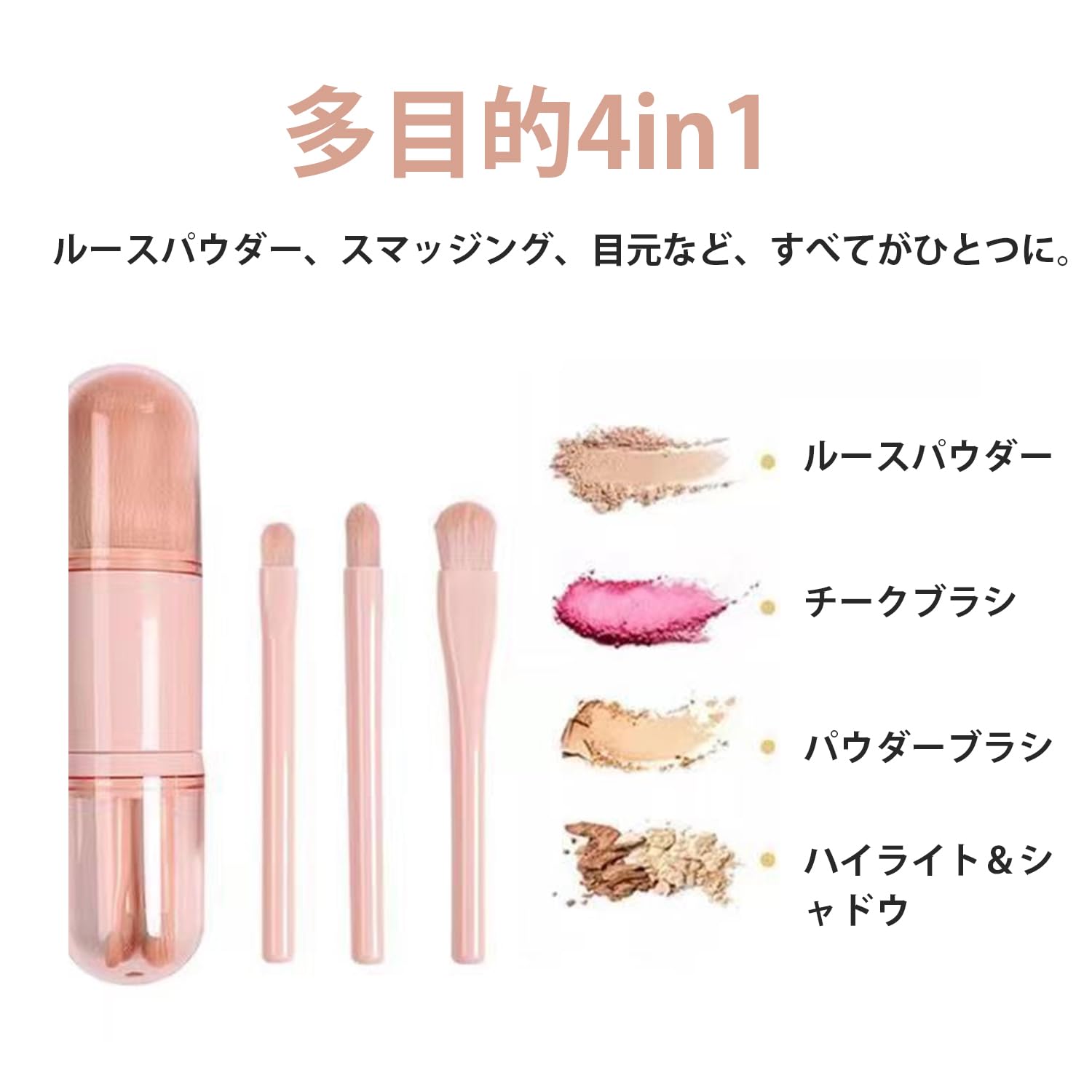 PAVIKE メイクブラシセット 携帯用メイクブラシ 4in1トラベルメイクブラシ ルースパウダーブラシ アイシャドウブラシ スマッジブラシ リップブラシ オーガナイザー付き 旅行、出張に最適です