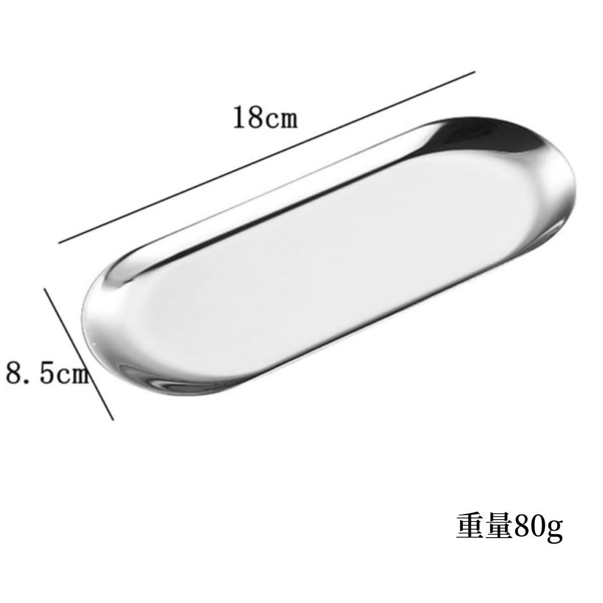 サイズ:18 x 8.5 x 1cm。 重量: 80g/個。 材質:ステンレス。 数量:5枚セット。