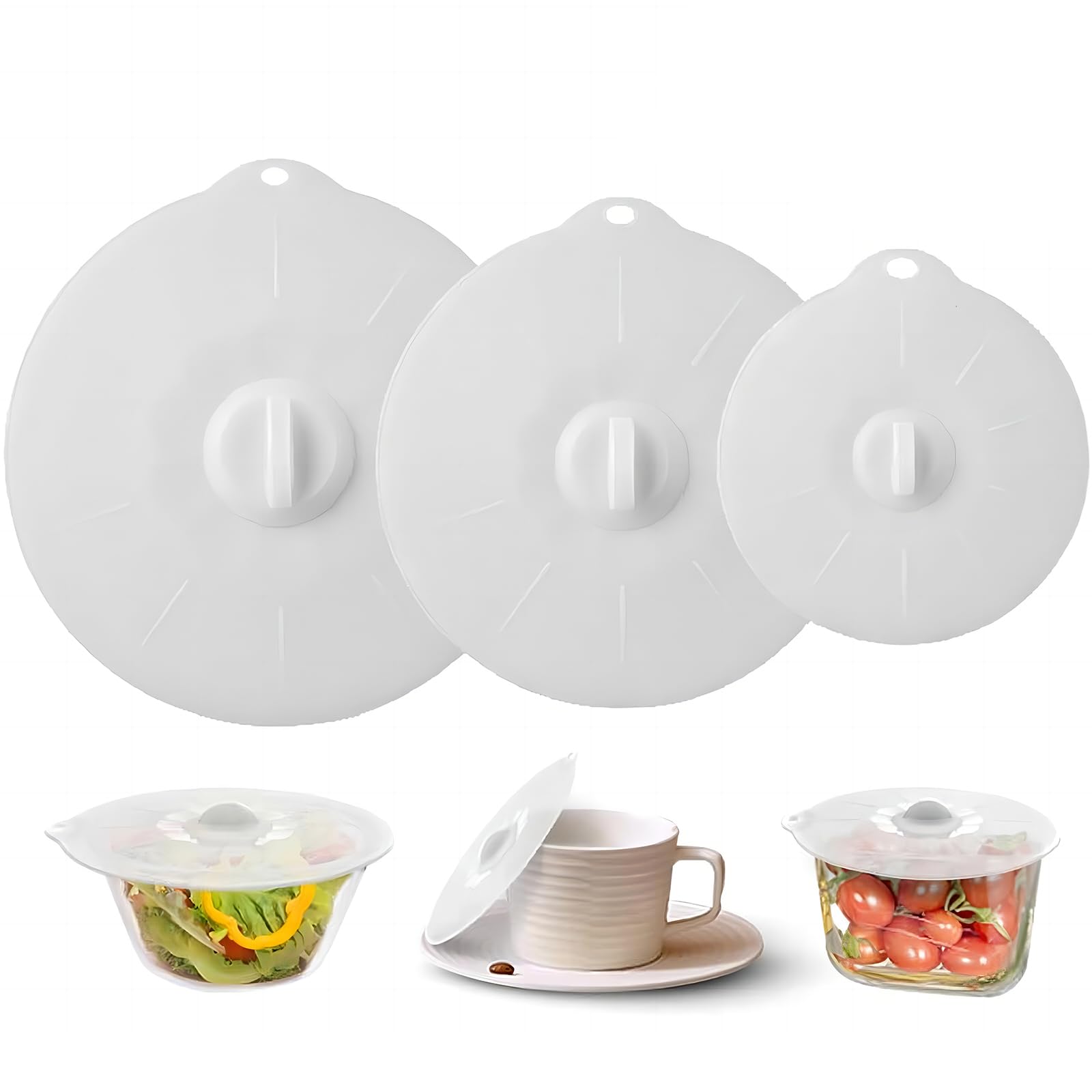 【在庫処分】シリコン蓋 シリコンカバー【3点セット】 耐熱耐冷 シリコンふた 鍋蓋シリコンマグカップ蓋 シリコンカバー 密閉蓋 調理の貯蔵 吸着力 電子レンジ 食洗機対応 (半透明ホワイト) | GIGATERA