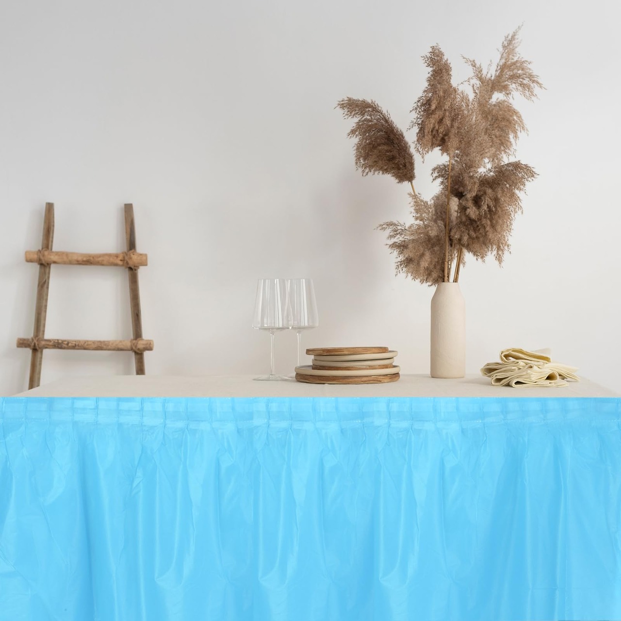 uxcell 1パック ライトブループラスチックテーブルスカート 矩形テーブル用 29 ×14フィート テーブルスカート 誕生日や結婚式パーティー用 使い捨てテーブルカバー