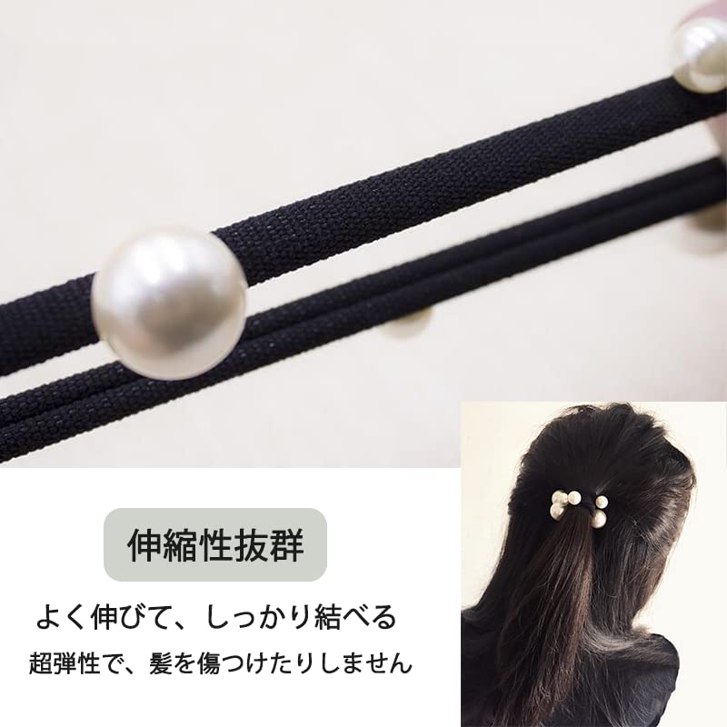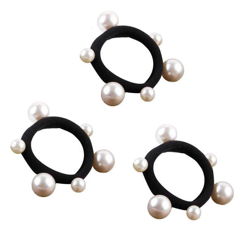 【人気】LIKENNY ヘアゴム パール ブラック 髪飾り 髪留め レディース シュシュ おしゃれ ビーズ シンプル 可愛い まとめ髪 韓国風 カジュアル上品 オフィス 通勤 小物 大人 かわいい 高校生 小学生( 3本) | GIGATERA