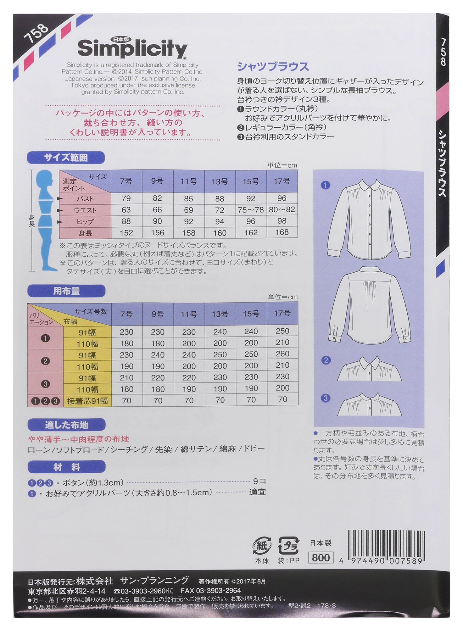 適した生地:やや薄手~中肉程度の布地(ローン/ソフトブロード/シーチング/先染/綿サテン/綿麻/ドビー)。