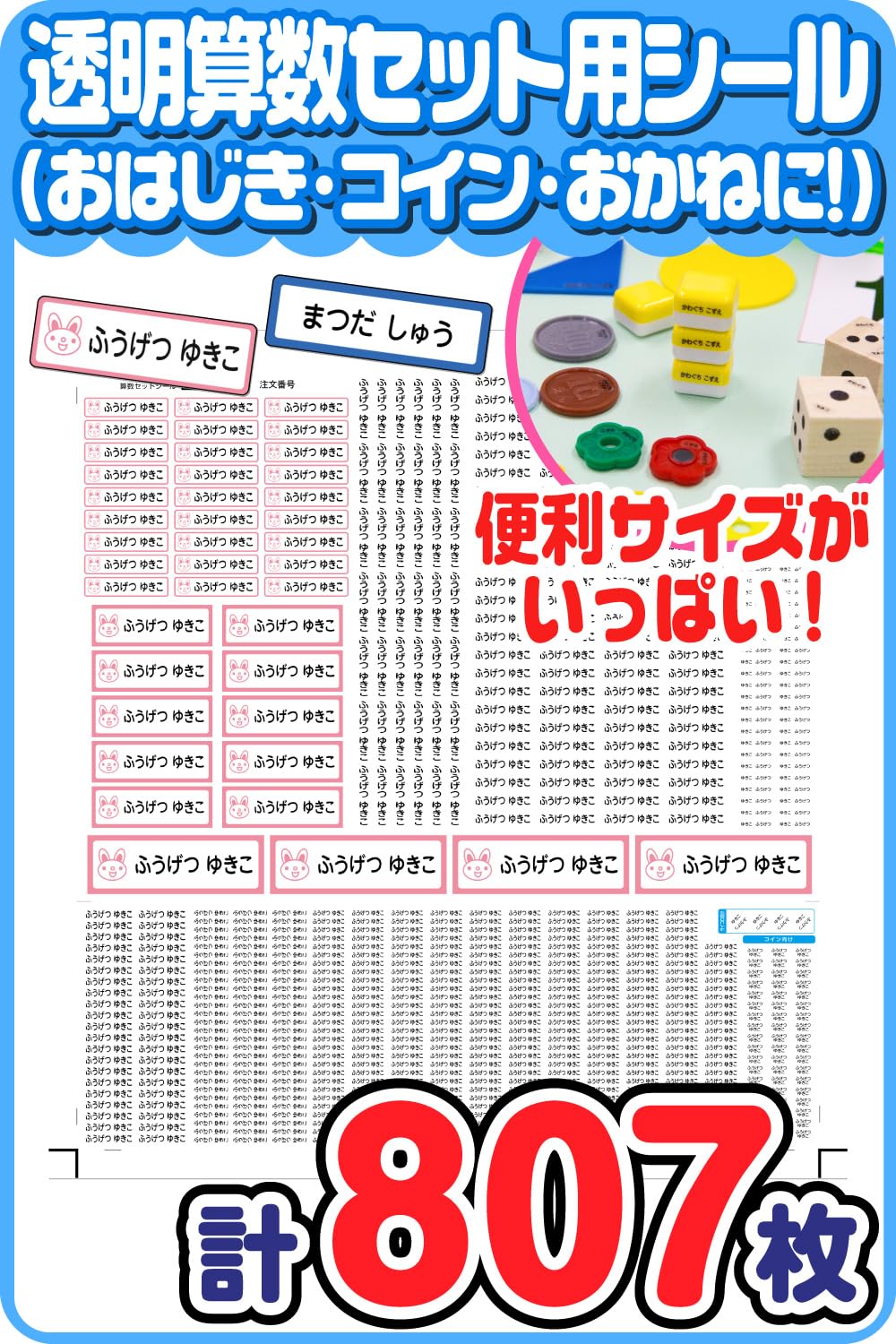 ホビナビ 【お名前シール申込案内書】 名前シール 算数セット 透明 防水 ノンアイロン 小学生 シンプル おはじき デザイン28種 name-clmath-fba