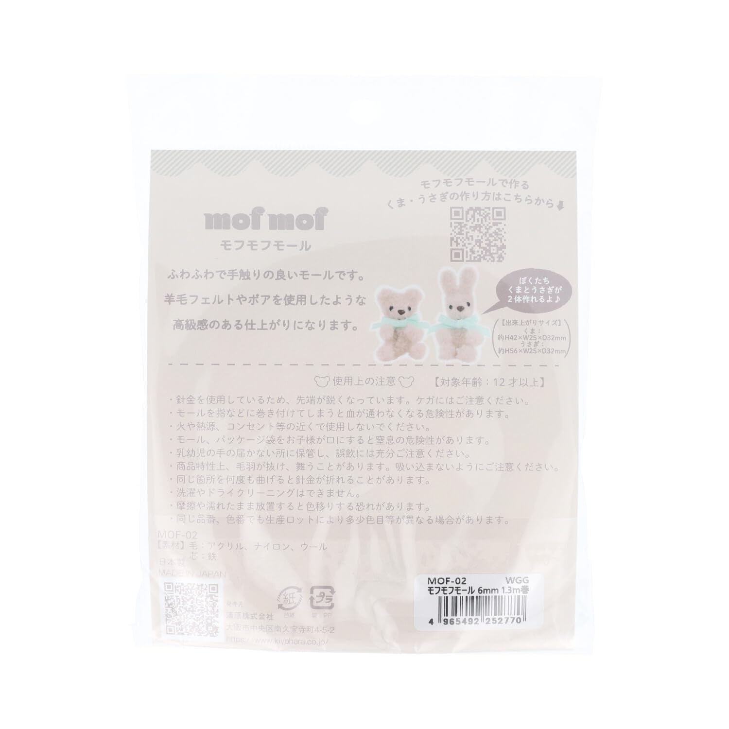 KIYOHARA モフモフモール モール 幅6mm×1.3m巻 WGG ホワイトジンジャー くま・うさぎ が作れるレシピのQRコード付き MOF-02