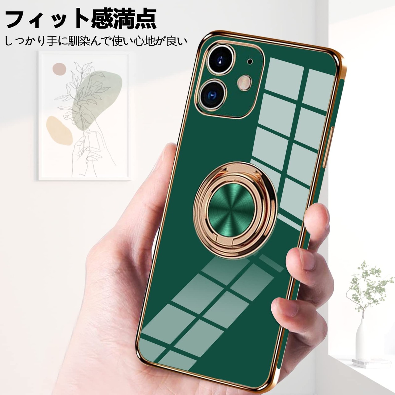 iPhone XR 用ケース リング付き メッキ加工 クリア TPU 耐衝撃 驚くほどの手触り 車載ホルダー対応 軽量 薄型 レンズ保護 マット感 人気 落下防止 アイフォン XR 用 スマホケース 緑 MD-6DDD-04-02