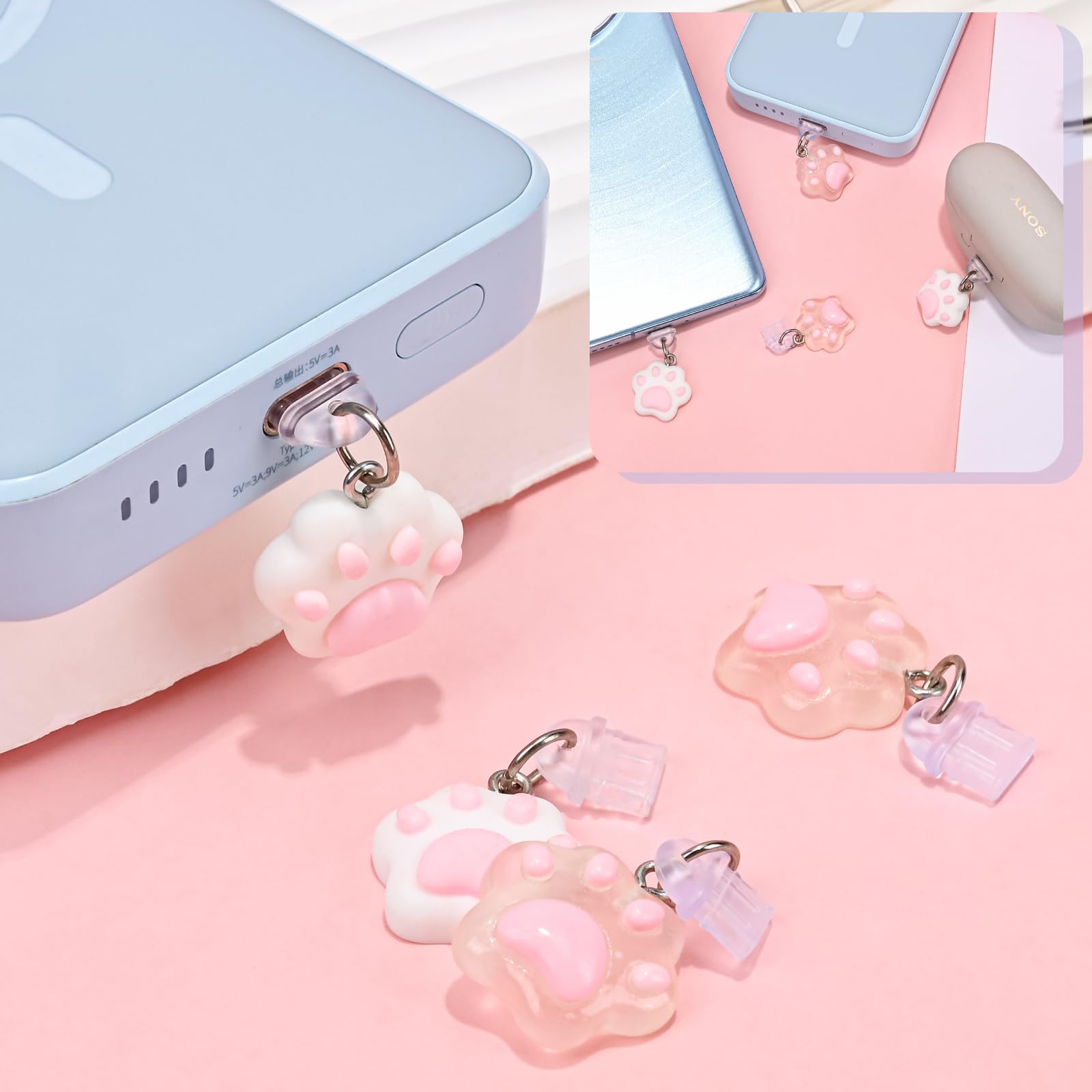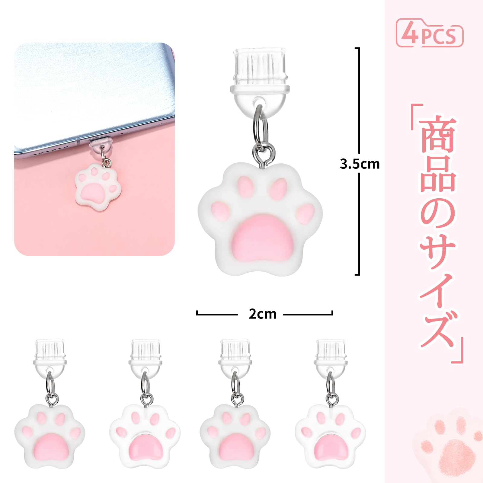 Dlseego usb キャップ usb カバー ケーブルキャップ usb c キャップ タイプ C アンチ ダスト プロテクター iPhone16 15 16Pro 15Pro対応Type-Cポート防塵保護カバー Type C充電穴キャップ マートフォン用 lightning キャップ4個入り 透明な猫爪*2+白い猫爪*2
