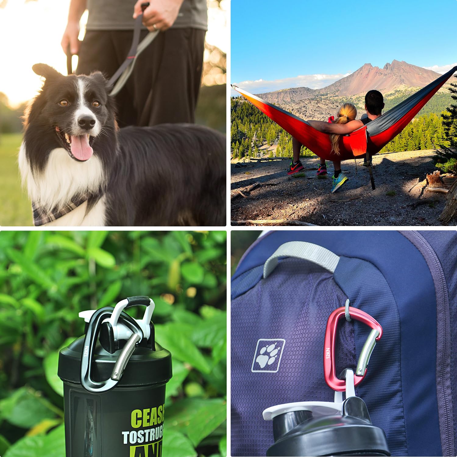 ?【優れたデザイン】このタイプのカラビナはより広い開口部があって、利用できる場合がもっと広いです。ロックしやすく、使いやすい。また、この開口部には、誤って引っ掛かることを防ぐために鋭い縁がありません。あなたのギアを着ることを心配しないでください。