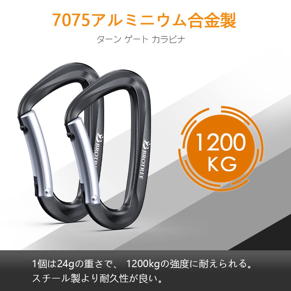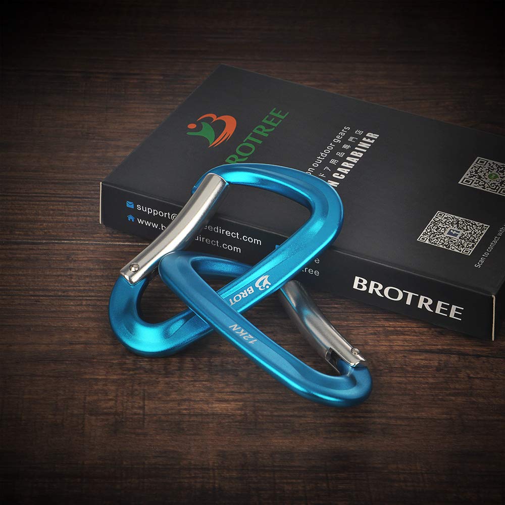 Brotree カラビナ 耐荷重12KN (1200kg) 登山釦 Dリング 軽量 アルミ ハンモック キャンプ スリング アウトドア用 2個/4個セット(カーブゲート シリーズ)
