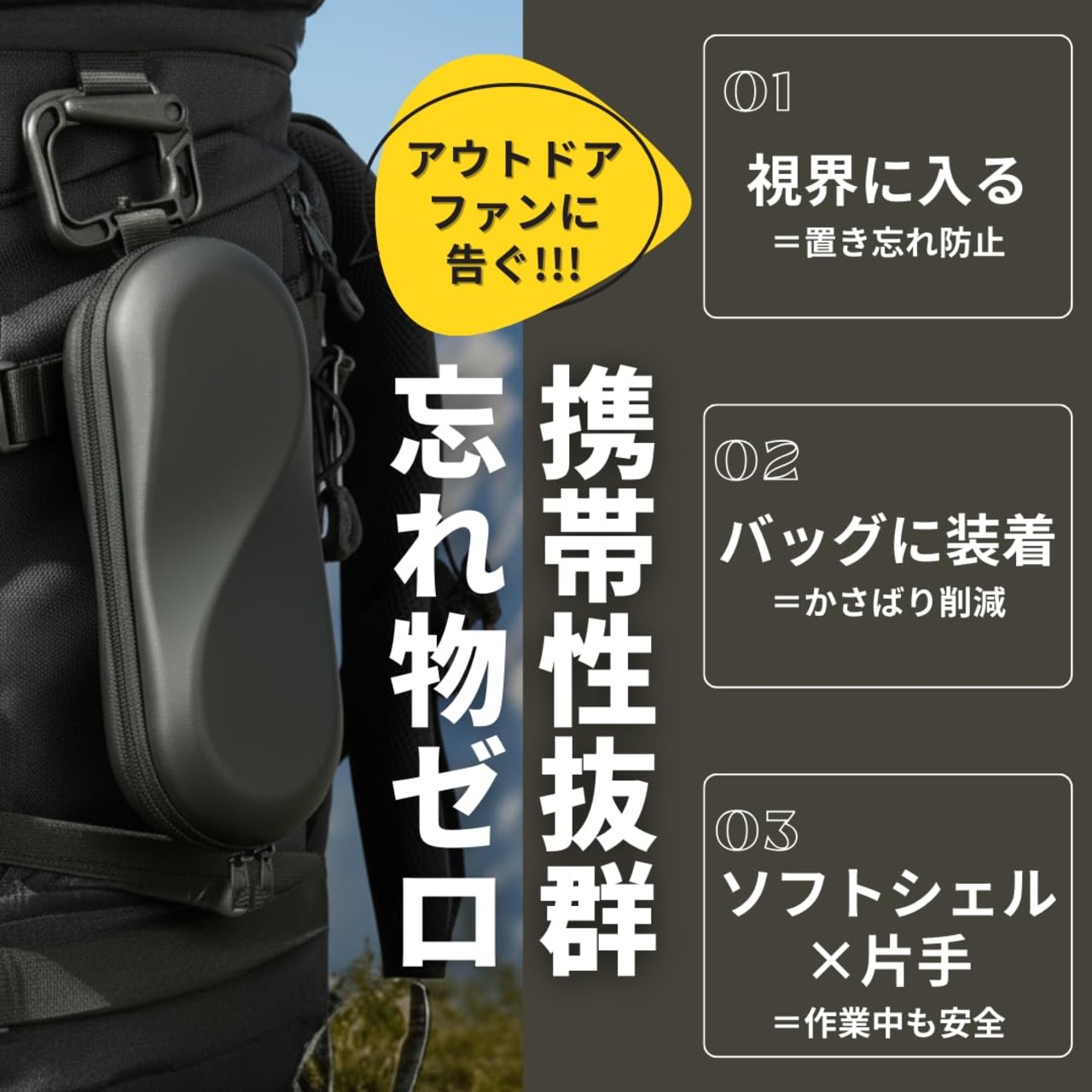 【カラビナ付で便利】鞄、リュックサック、ランドセルなどに引っかけることができて便利。プラスチックカラビナを採用しているので軽さも維持しています。
