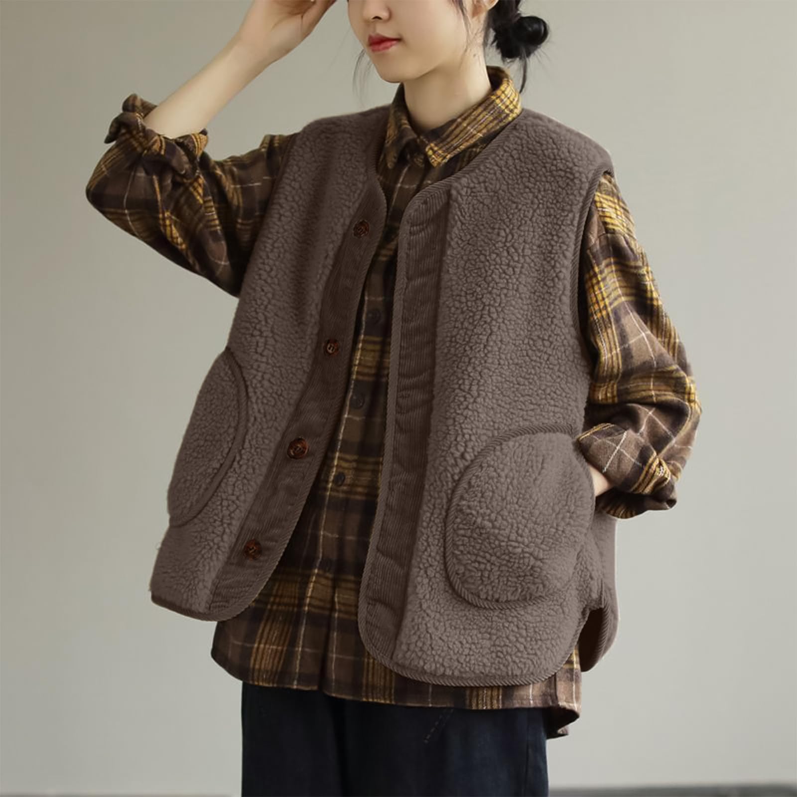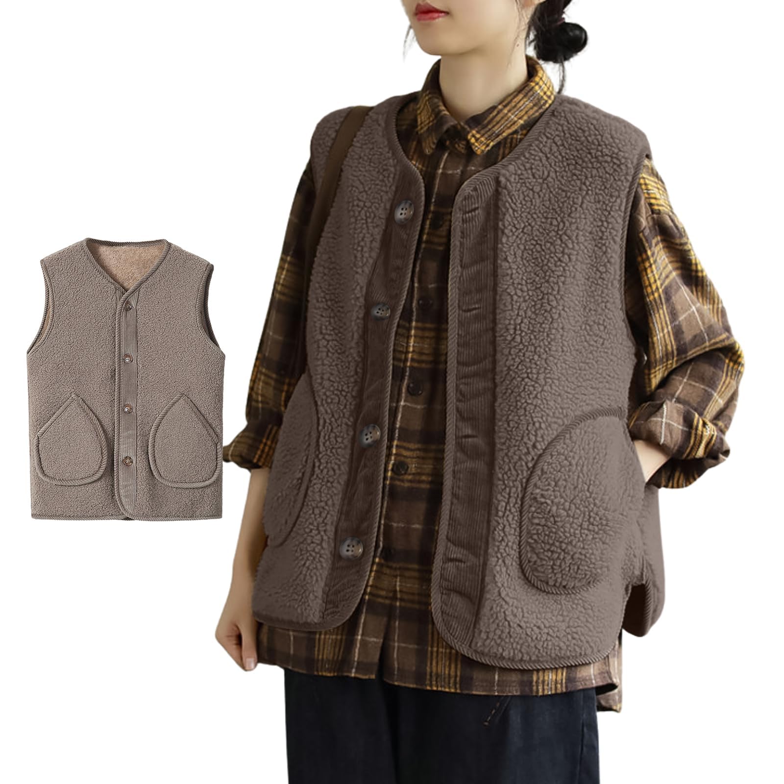 [Augseed] ボア ベスト ジレ レディース ノースリーブ 春 冬 シャギー トップス 着痩せ クルーネック もこもこ 前開き ポケット付き 秋服 おしゃれ 大きいサイズ ゆったり アウター 重ね着 きれいめ 部屋着 インナー 裏起毛 カジュアル 防寒
