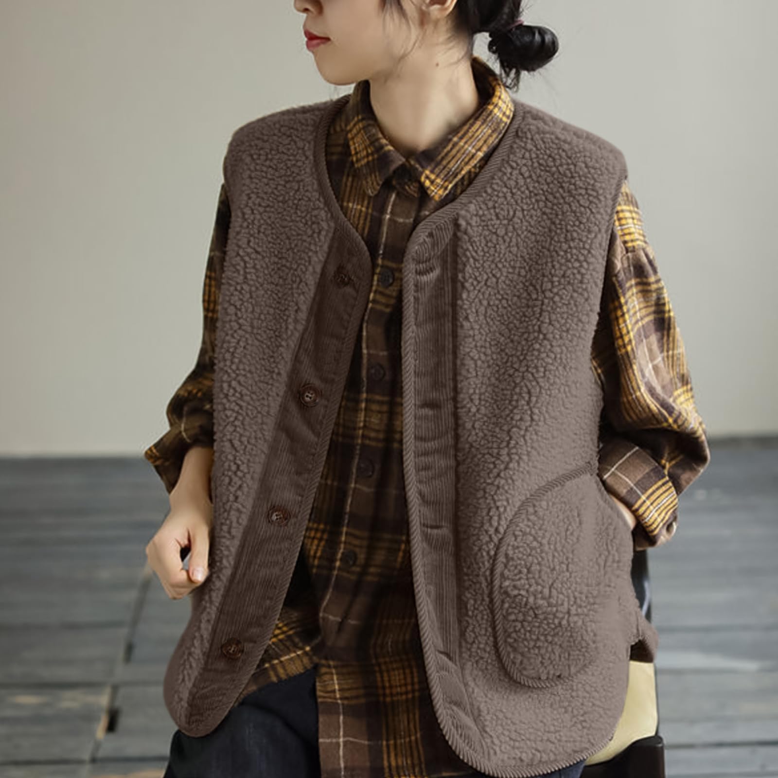 【在庫処分】[Augseed] ボア ベスト ジレ レディース ノースリーブ 春 冬 シャギー トップス 着痩せ クルーネック もこもこ 前開き ポケット付き 秋服 おしゃれ 大きいサイズ ゆったり アウター 重ね着 きれいめ 部屋着 インナー 裏起毛 カジュアル 防寒 | GIGATERA