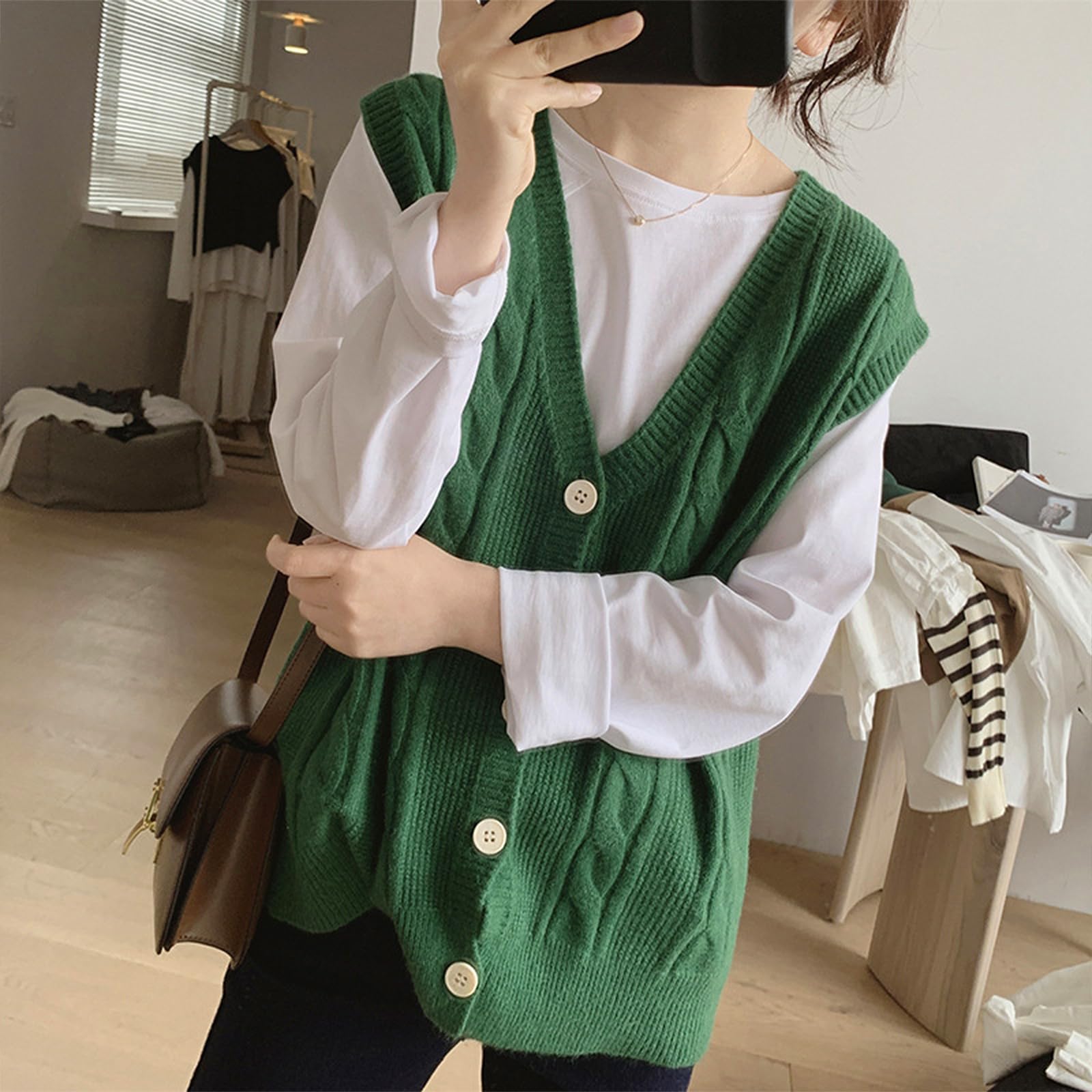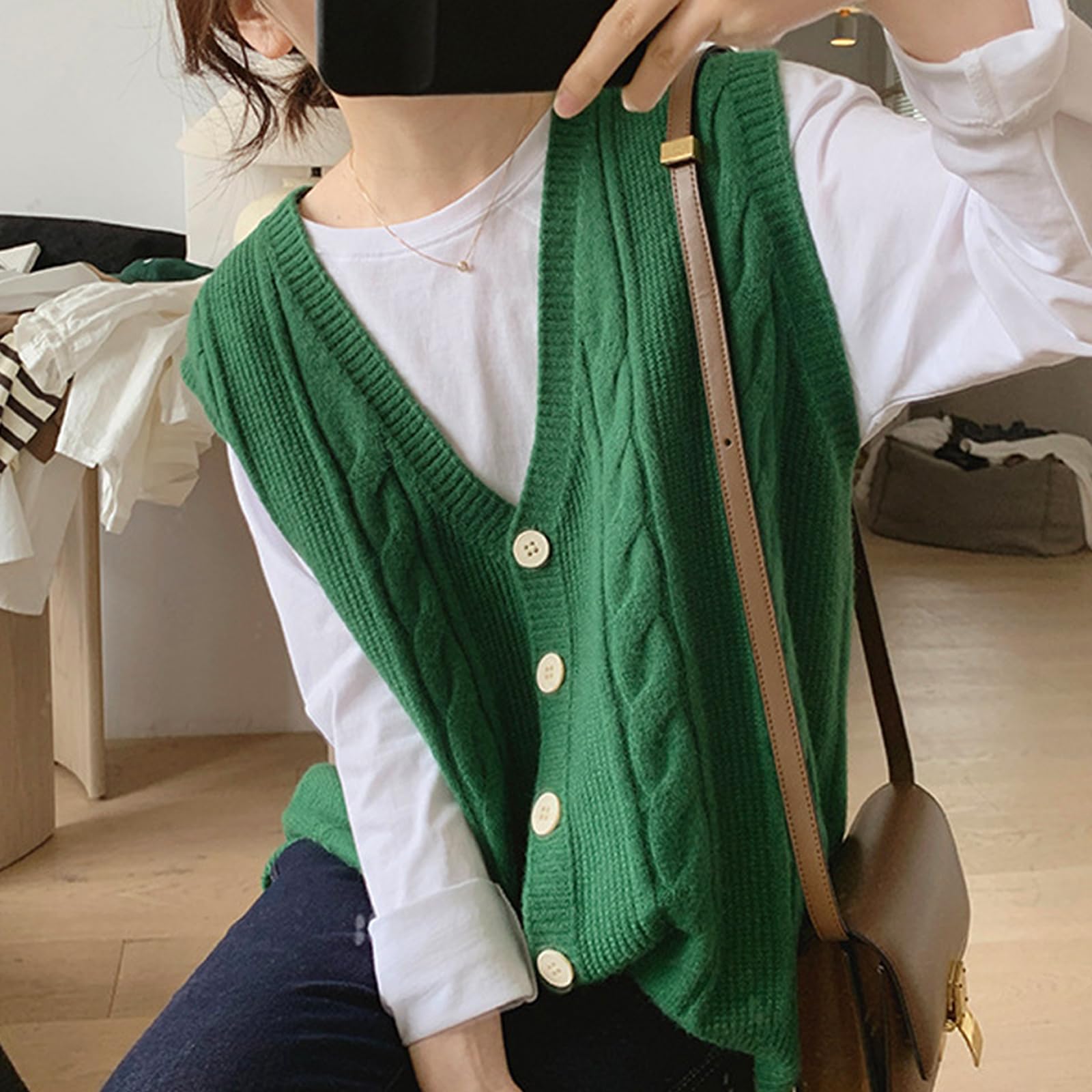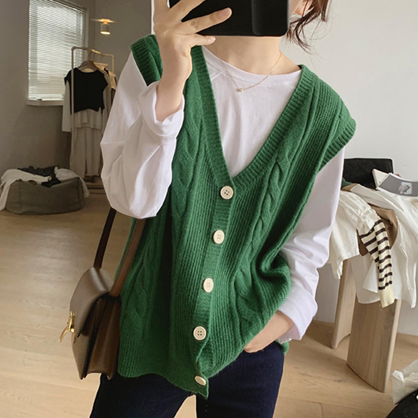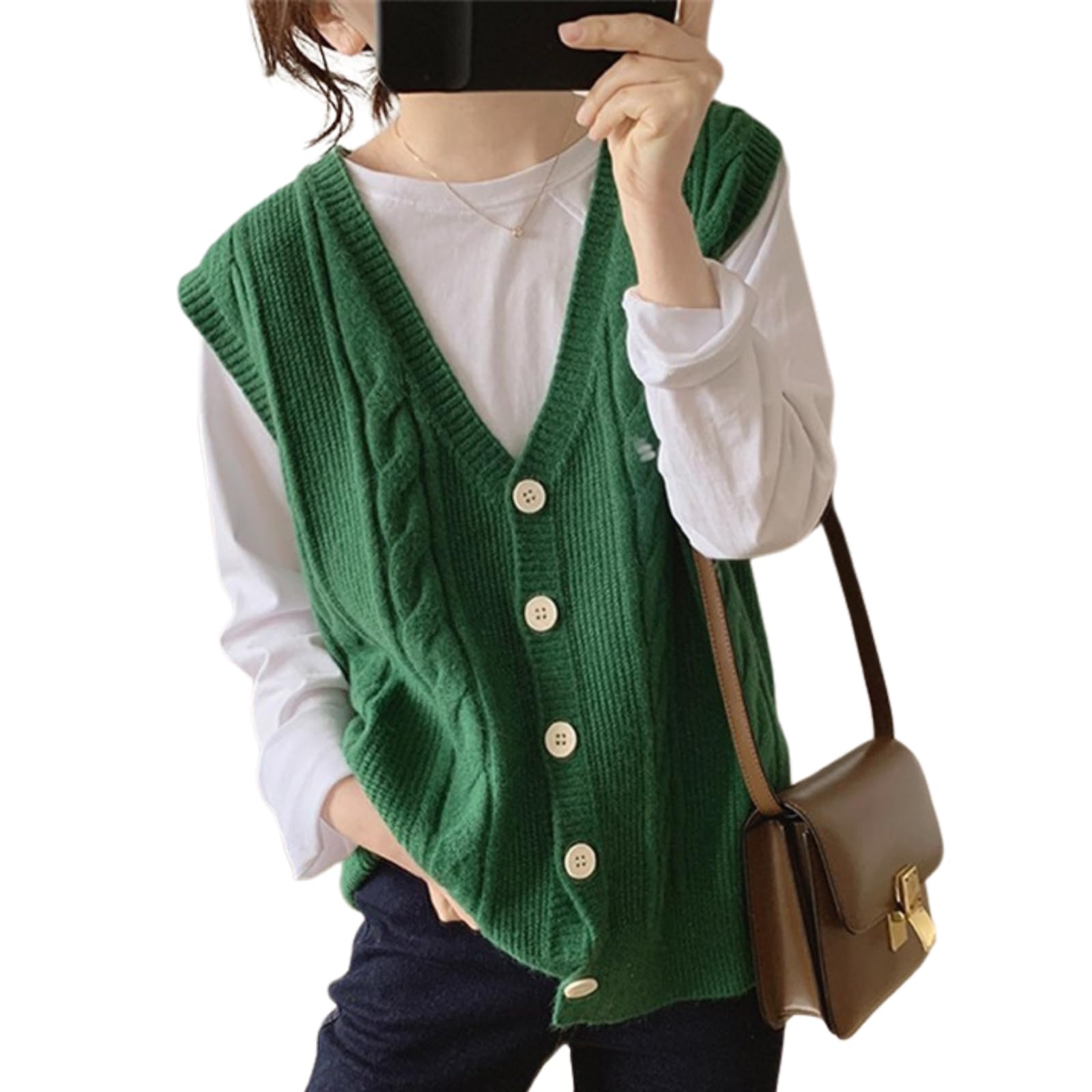 【人気】[SeiunAn] ニットベスト レディース セーター ロングベスト 秋冬春 前開き ノースリーブ ケーブルニット Vネック 薄手 大きいサイズ ゆったり 韓国 おしゃれ トップス 重ね着 ボタン 女子 通勤 きれいめ ジレ | GIGATERA