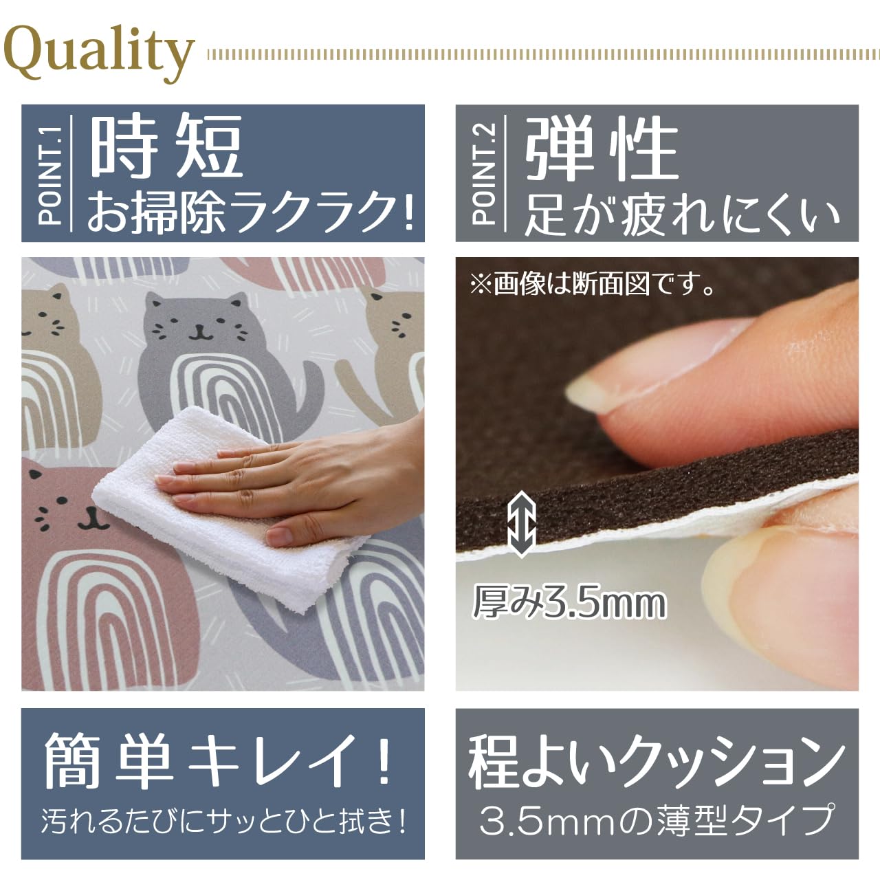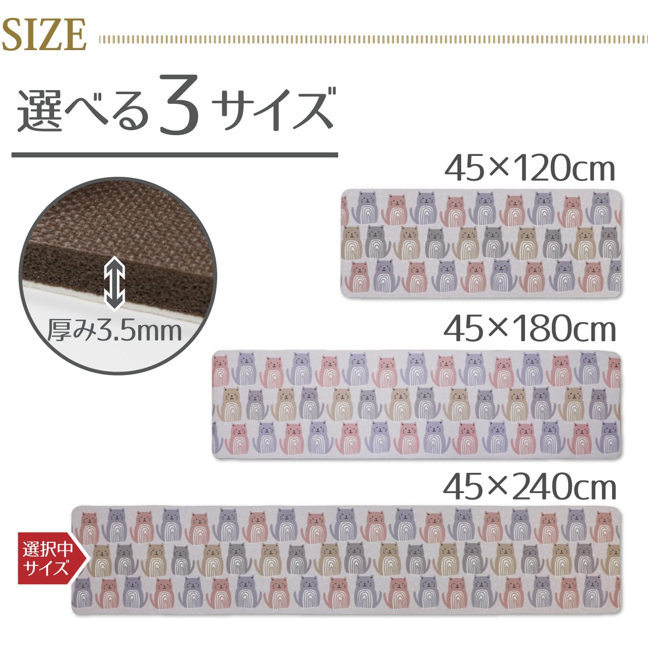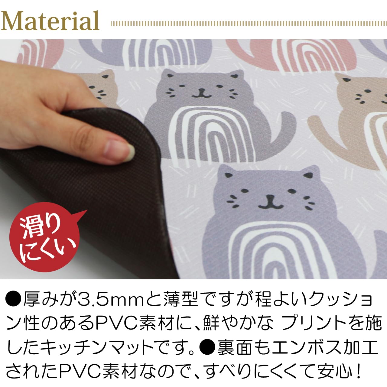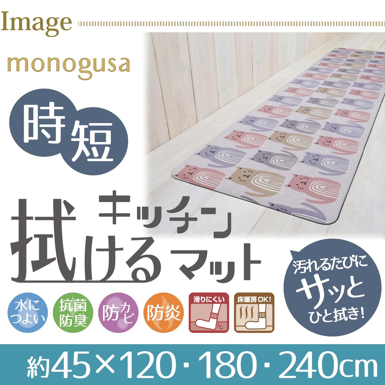 ヨコズナクリエーション 拭けるキッチンマット 3.5mm厚 薄型 ビニール製 抗菌防臭 防カビ 防炎 (ミャウミャウ グレー, 45×240cm)