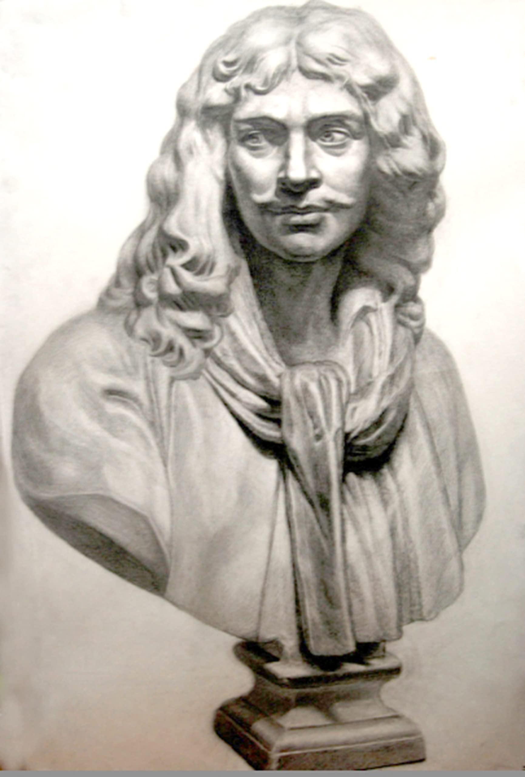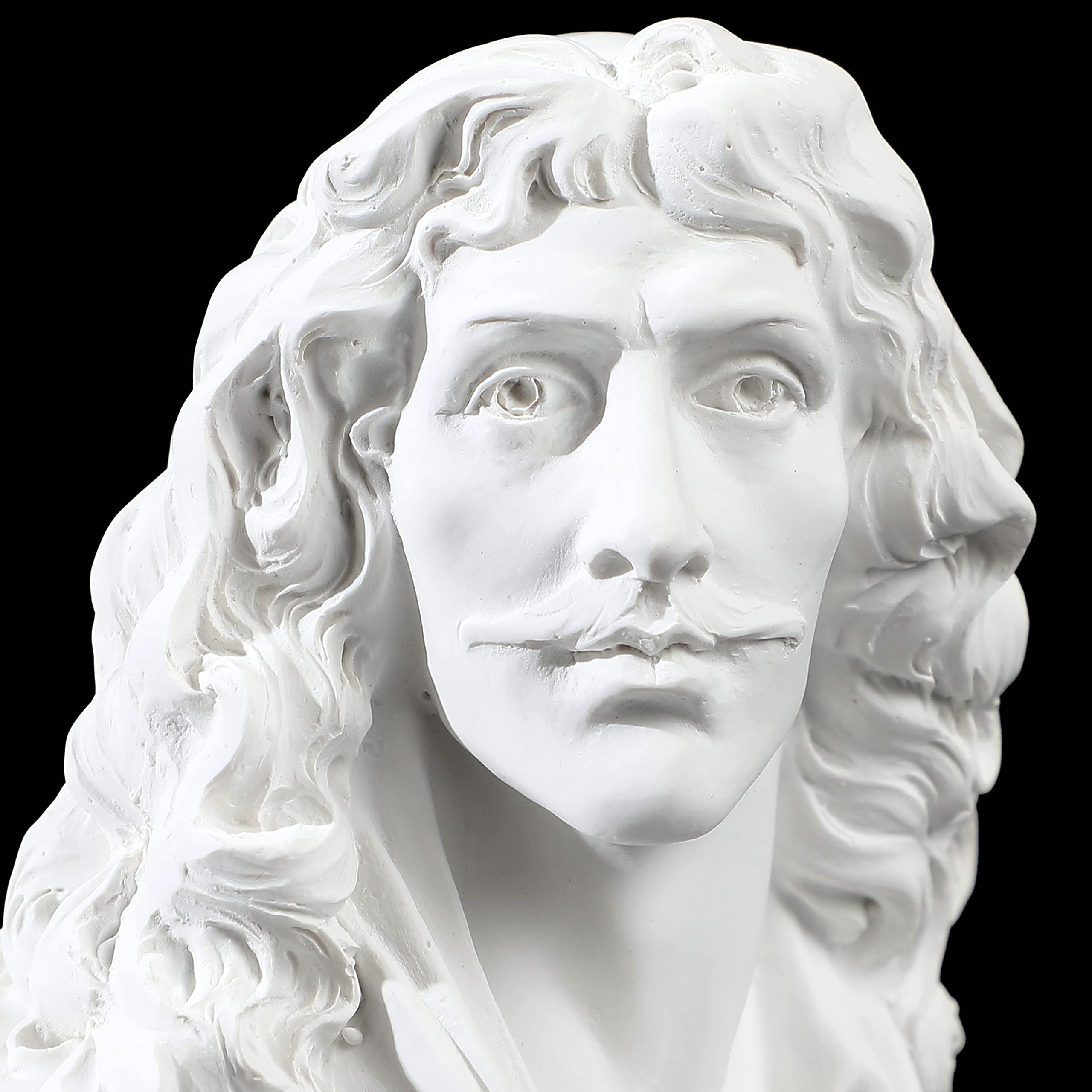 サイズ(約):15cm 材質:硬質樹脂 重量:500g ※モリエールは、17世紀フランスの俳優、劇作家。コルネイユ、ラシーヌとともに古典主義の3大作家の1人。本名ジャン=バティスト・ポクラン。悲劇には才能がなかったが、鋭い風刺を効かせた数多くの優れた喜劇を制作し、フランス古典喜劇を完成させた。