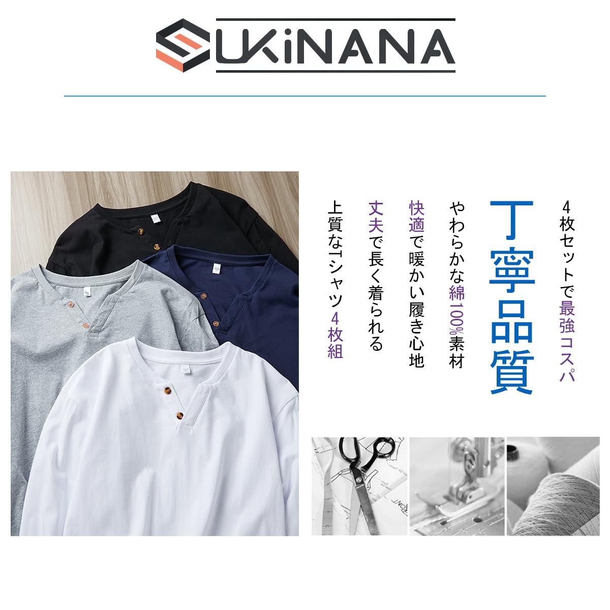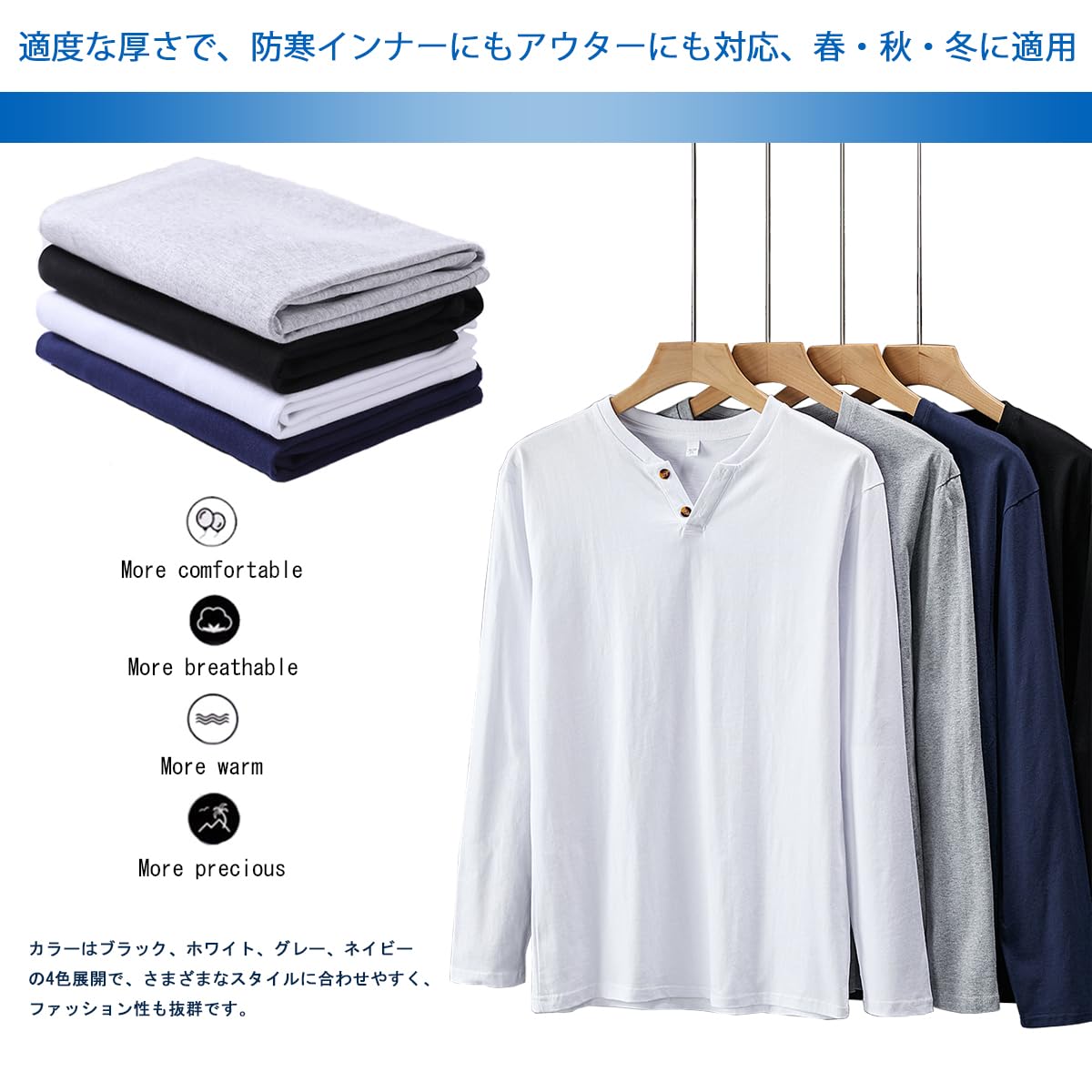 長袖tシャツ メンズ 綿100% 4枚組 Vネック ユニークなボタン クセになる肌触り 防菌防臭 インナーシャツ 無地 通気性 ファッション 春 秋 冬