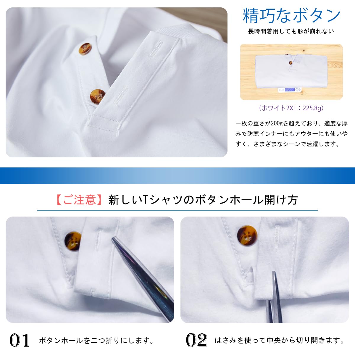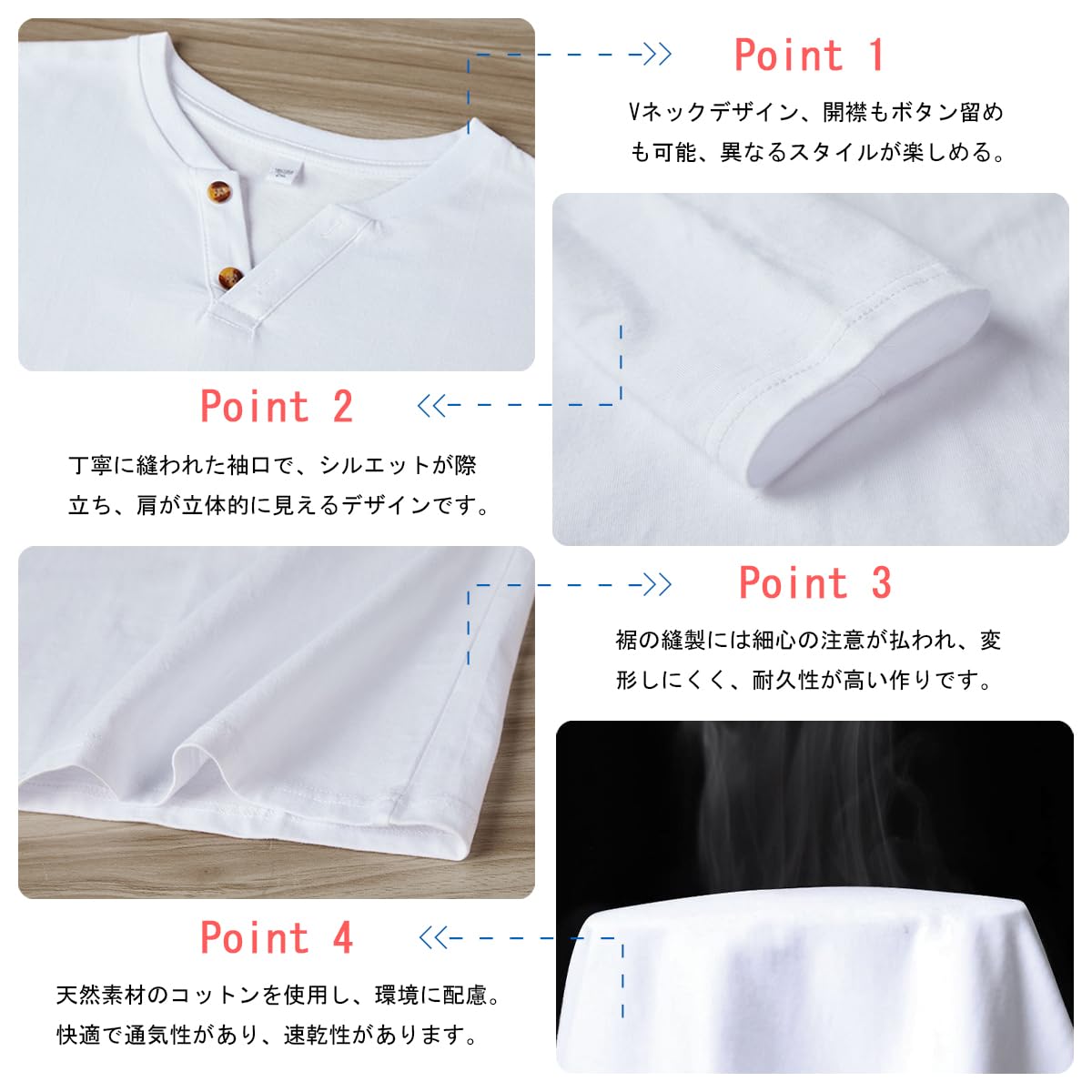 「高品質でコストパフォーマンスに優れる4枚セットボタン付きVネックTシャツ」丁寧にデザインされたVネックTシャツで、ボタンデザインを追加することで単独での着用もシンプルになりすぎず、優雅で落ち着いた印象を与えます。4枚セットの高品質Tシャツをリーズナブルな価格で提供し、コストパフォーマンスに優れた一品です。