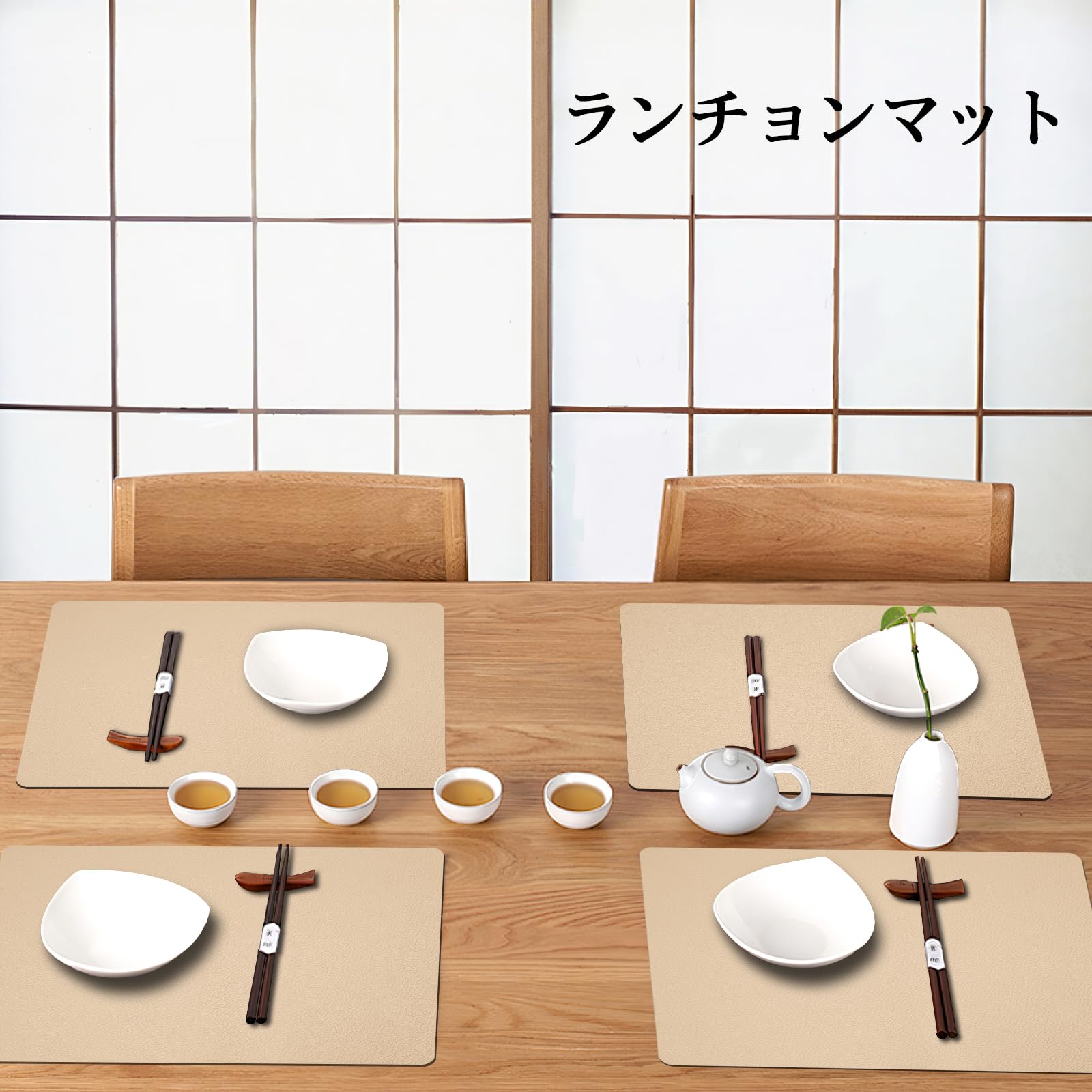 【滑り止め・防水&お手入れ簡単】 弊店のランチョンマットは、驚くほど優れた滑り止め機能を持っています! 表面と裏面について お食事マットの表面は滑りにくい革張りの質感により、食器を安定して置くことができます。プレースマットの裏面は施された特殊加工により、テーブルの上に置いた瞬間、静電気でくっつり、食器が滑らないようにしっかり固定できます。食事の最中や日常使いの際に、マットが滑る心配なんてありません。お子様がいるご家庭でも、大いに安心してお使いいただけます。 お手入れの簡単さについて 汚れが付いても、濡れた布やスポンジでパッと拭くだけで、あっという間にきれいになります。水や飲み物をこぼしてしまっても大丈夫です。弊店のディナーマットは表面が防水加工されているため、即座に拭き取れます。油汚れや食べ物の跡も簡単に落とせます。