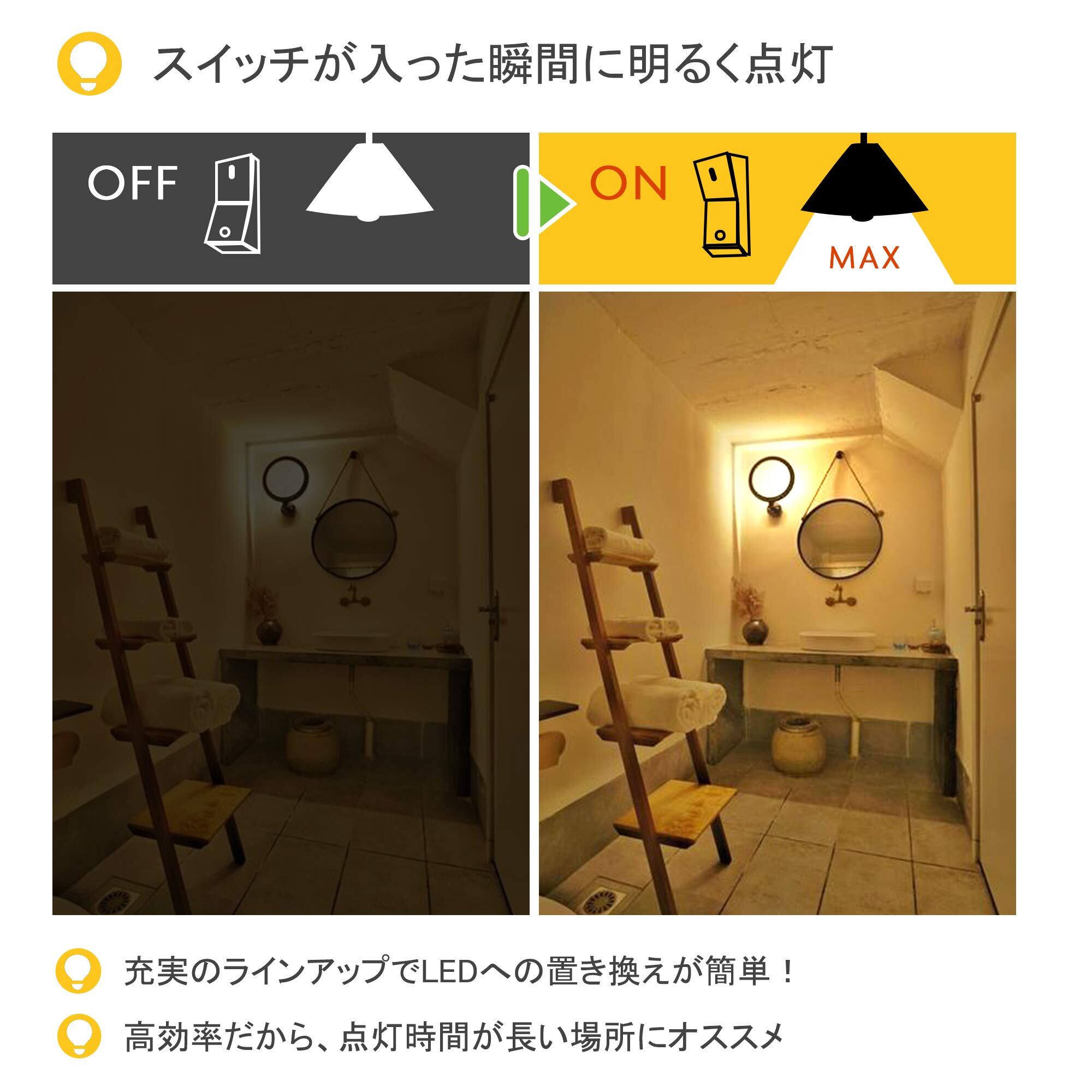 【おすすめ場所】E26口金なので、照明器具を替えることなく使用できます。玄関・廊下・トイレ・階段・脱衣所・お風呂など手元や足元の明るさが必要な場所におすすめ!