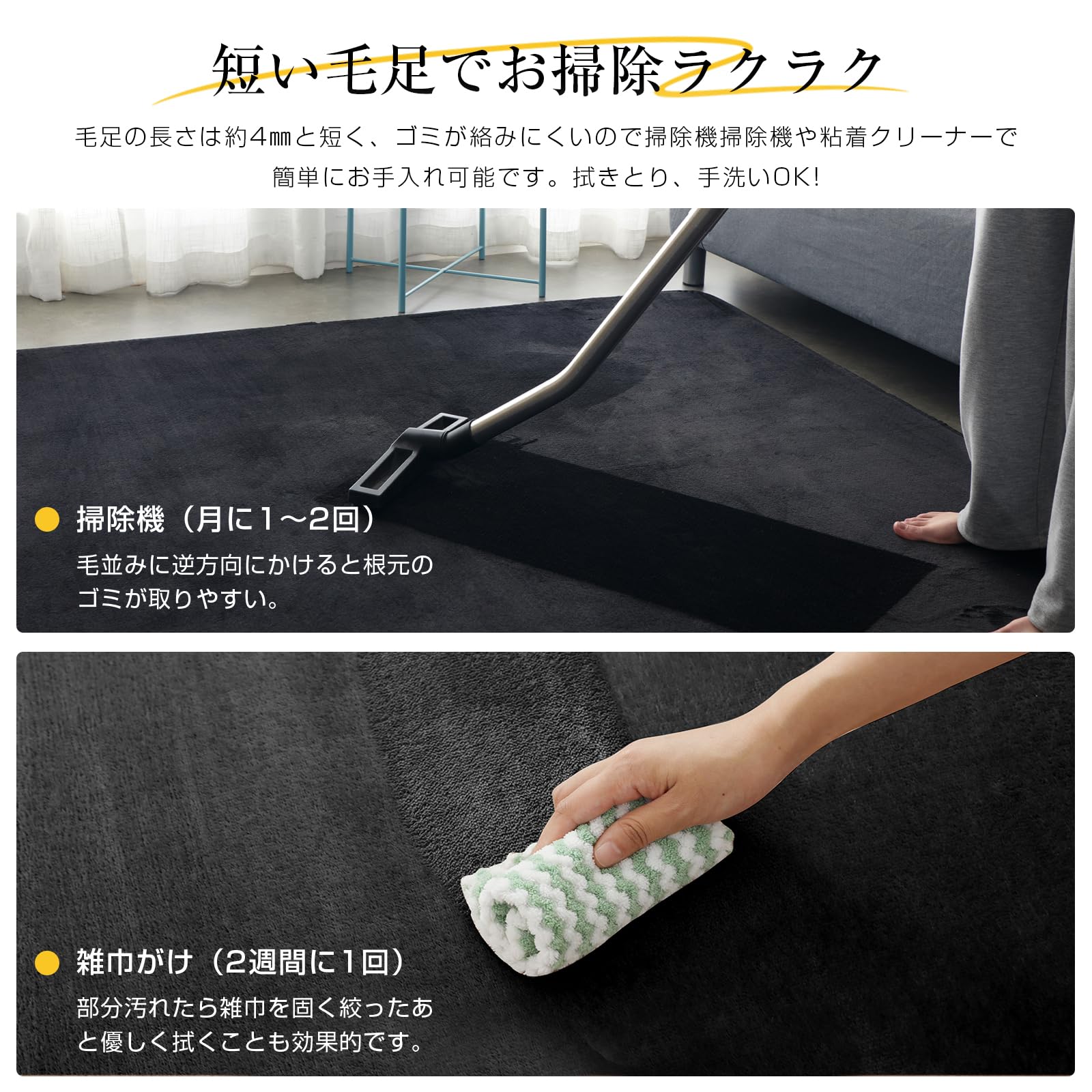 【お手入れ簡単】毛足の長さは約4mmの短毛ラグなので、ゴミやほこりが絡まりにくく、掃除機で簡単にお手入れ可能です。万が一飲み物をこぼしてしまっても、すぐに拭き取れば問題ありません。