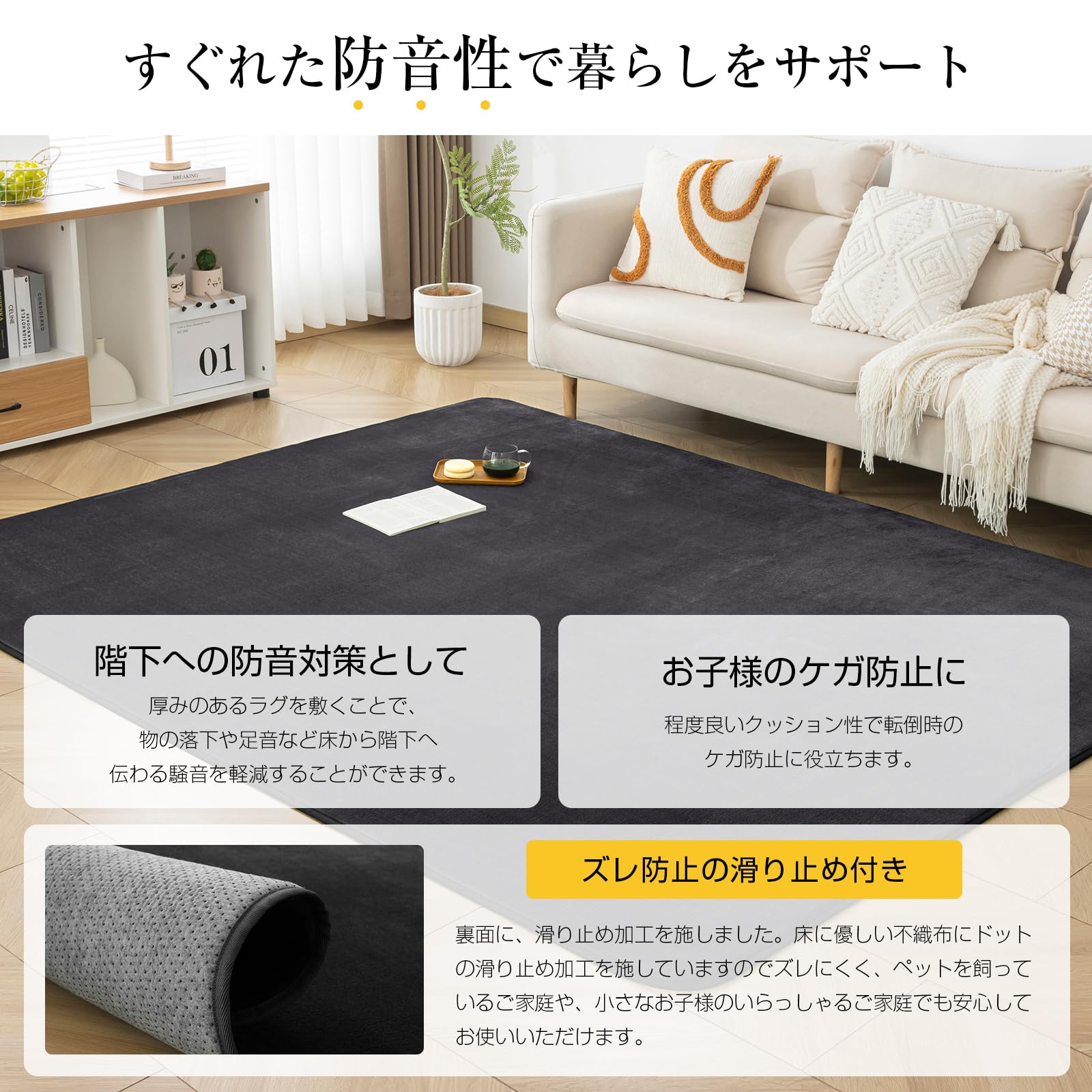 【新着】Keusnix ラグ カーペット 低反発 ラグマット 絨毯 1.5畳 滑り止め付 厚手 15mm 130x185cm リビングマット オールシーズン快適 ふわふわ肌触り 抗菌・防ダニ加工 こたつマット 床暖房・ホットカーペット対応 ブラック | GIGATERA