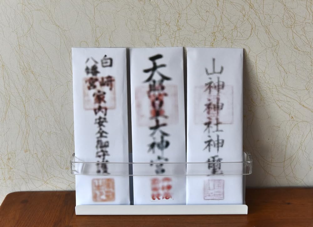 Surf station 壁掛 置き型 お神札立て 簡易神棚ホルダー ステンレスSUS304と透明なアクリル板 幅26cm 三社宮対応 中サイズDE2601