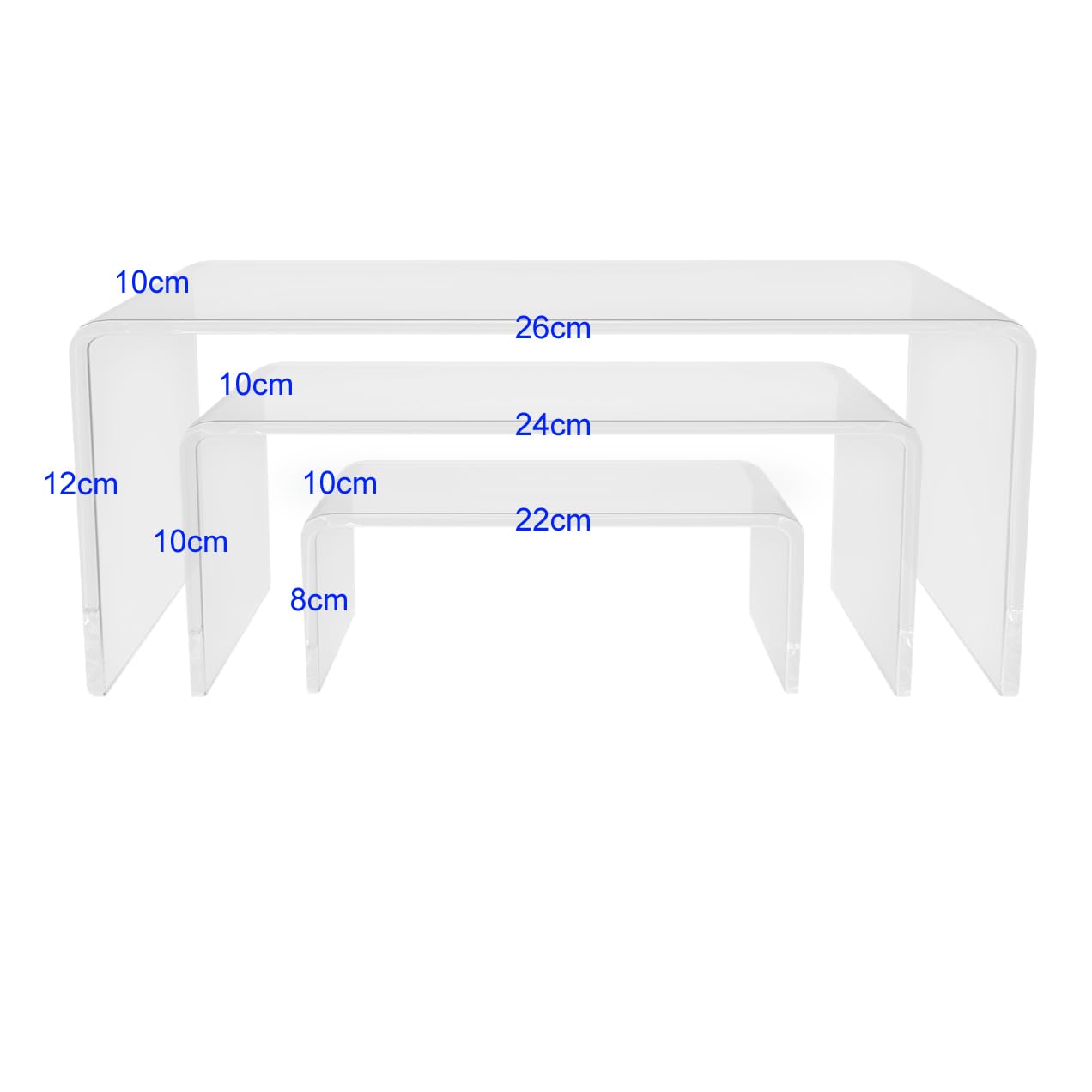 商品仕様:展示用アクリルスタンド3個セットです。25.4x10.2x10.2cm、23.4x10.2x8.7cm、21.4x10.2x7.2cm